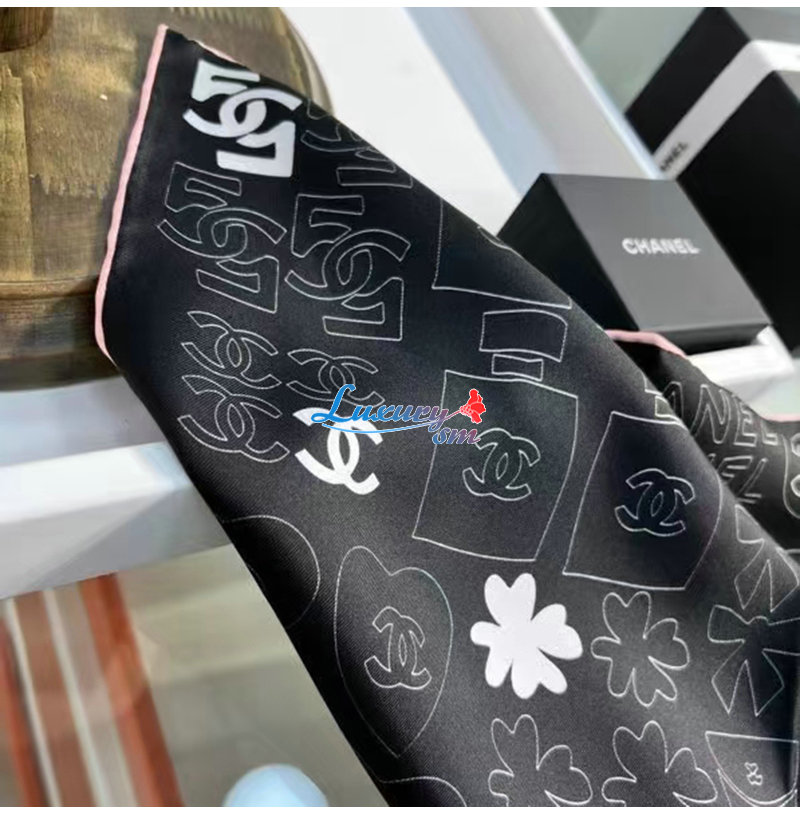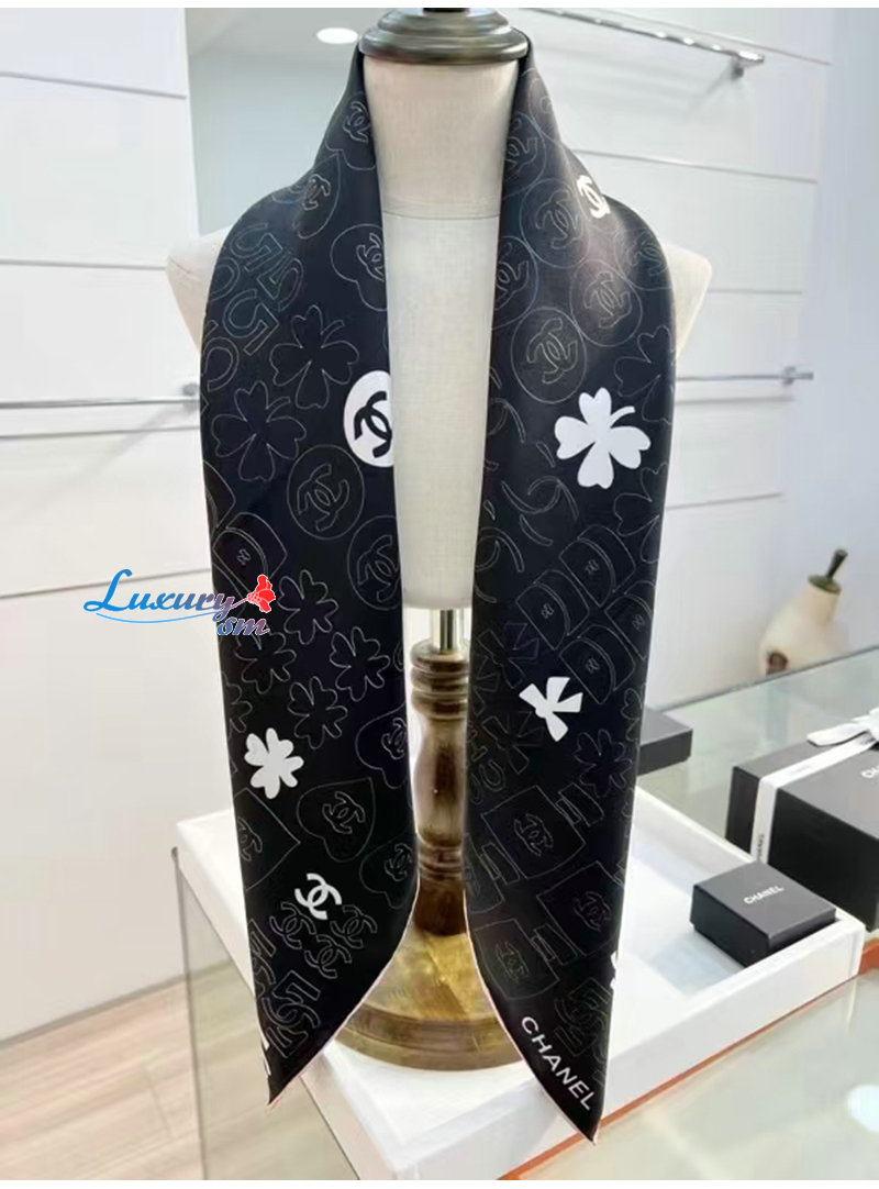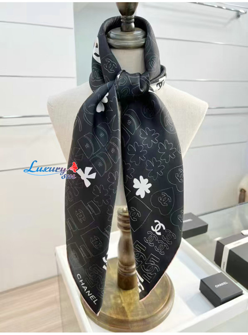 CHANEL-02197 샤넬 블랙 실크 스카프