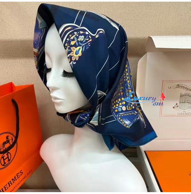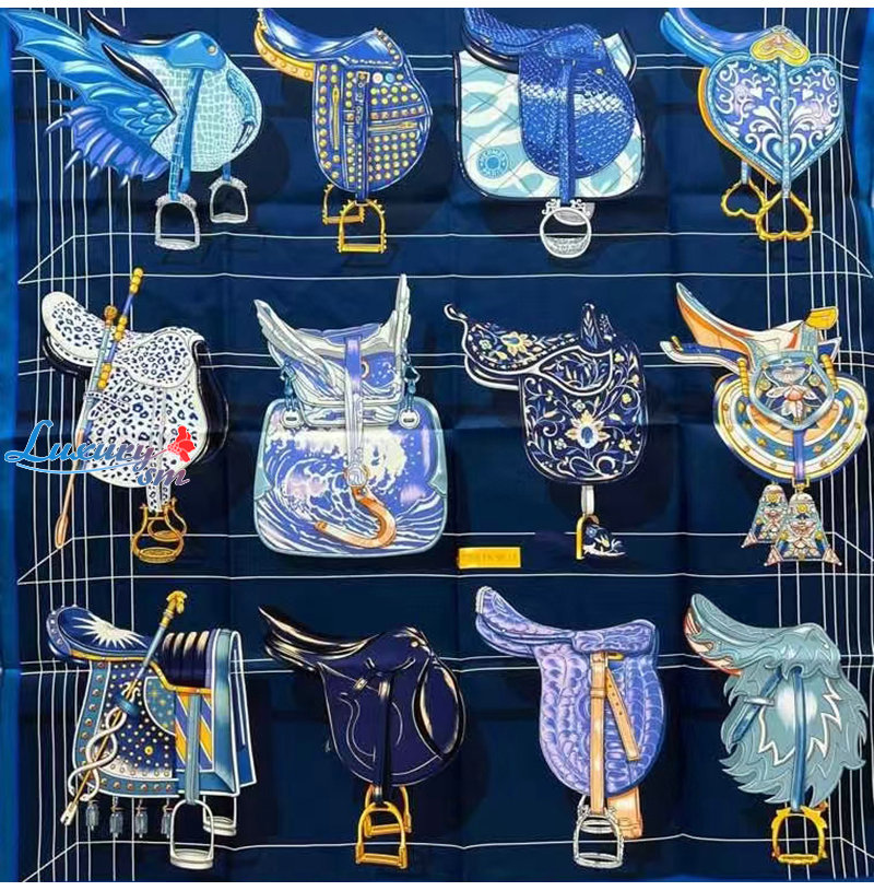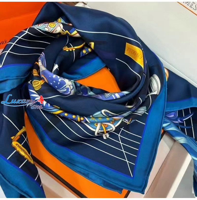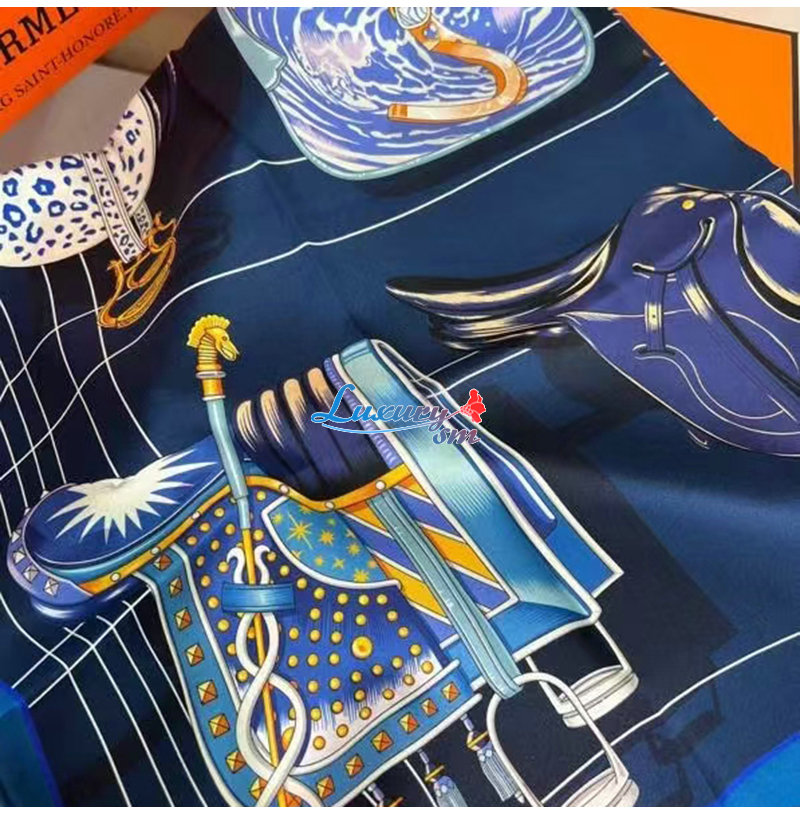 HERMES-H004204S 에르메스 네이비 Tous en Selle 스카프