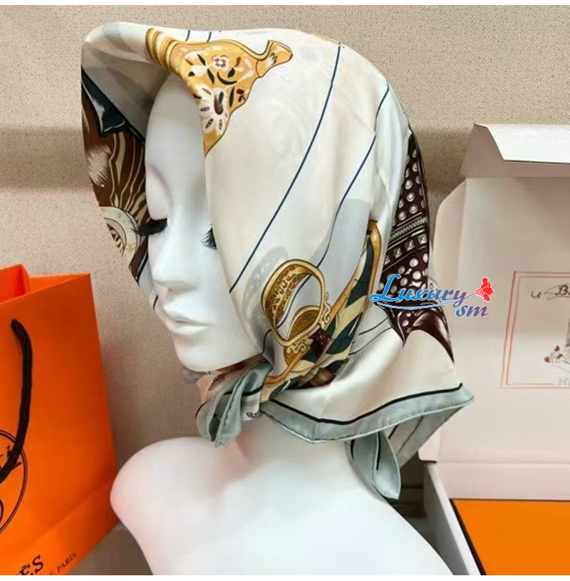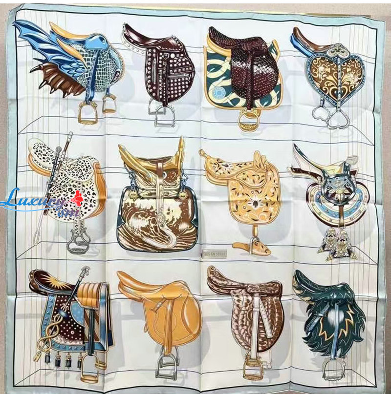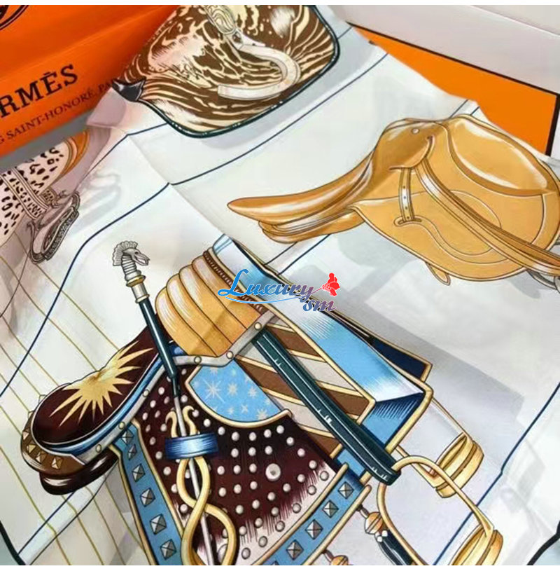 HERMES-H004204S 에르메스 화이트 Tous en Selle 스카프