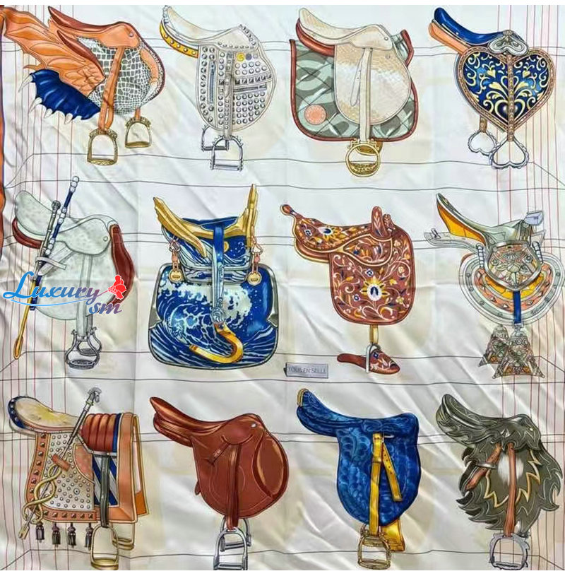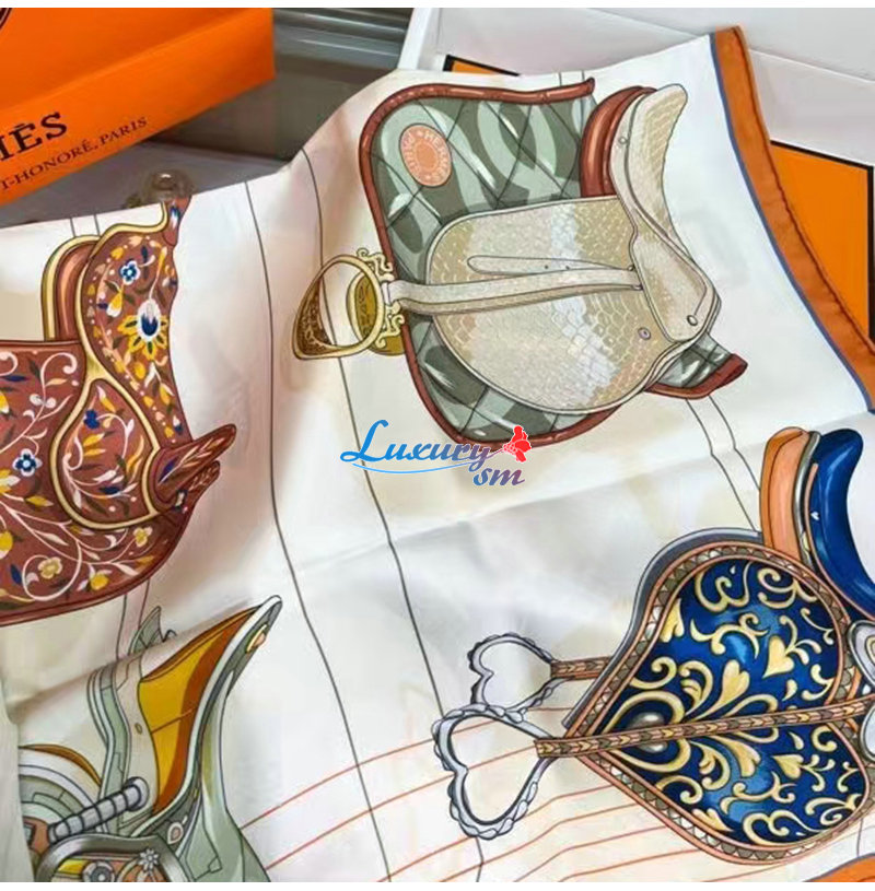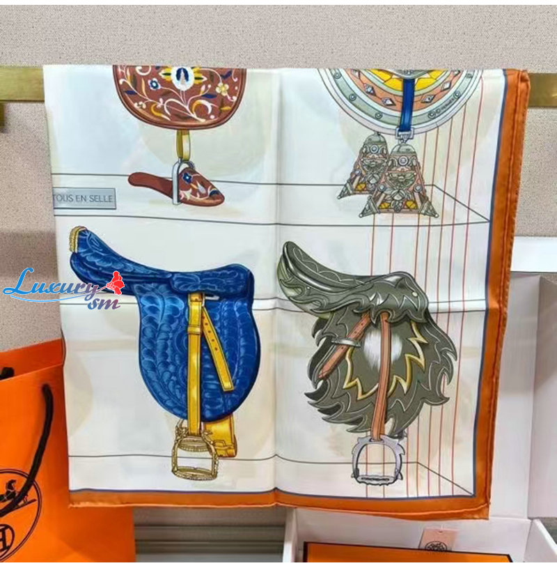 HERMES-H004204S 에르메스 크렘 Tous en Selle 스카프