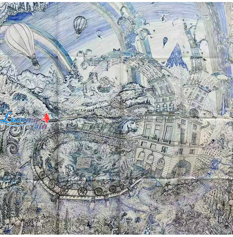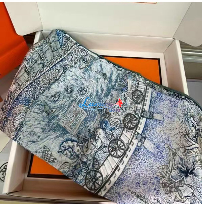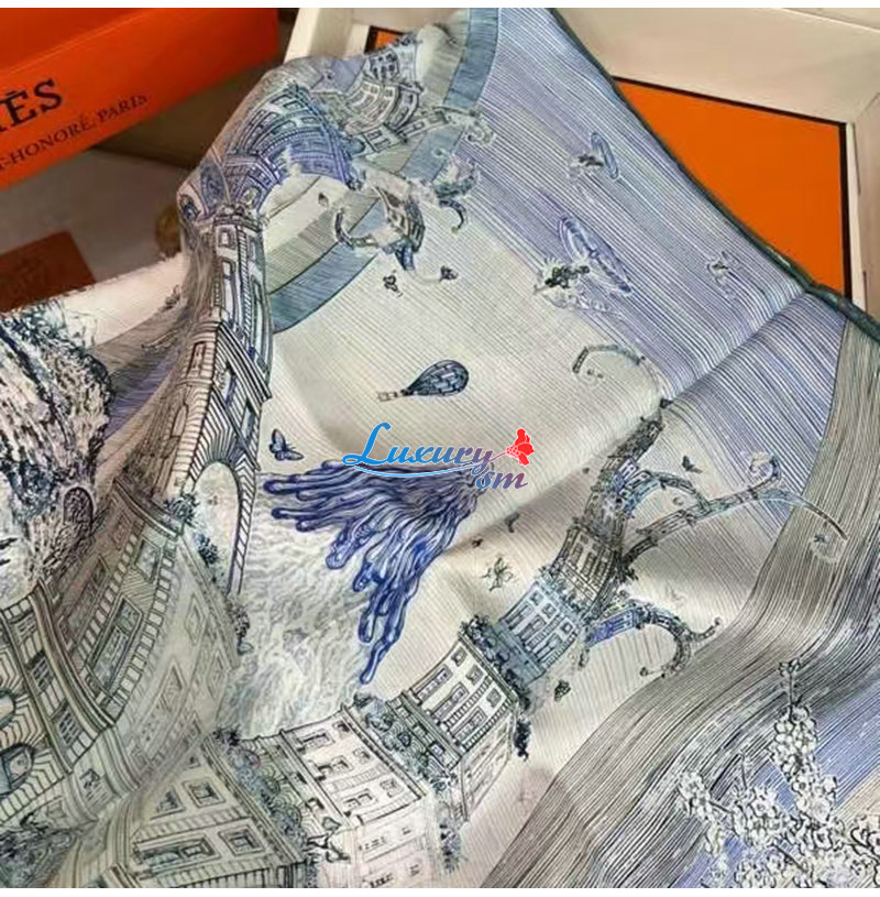 HERMES-H004147S 에르메스 블루/화이트 Les Folies du Faubourg 스카프