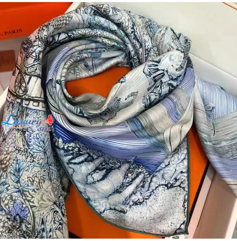 HERMES-H004147S 에르메스 블루 Les Folies du Faubourg 스카프 가격 : 180,000원