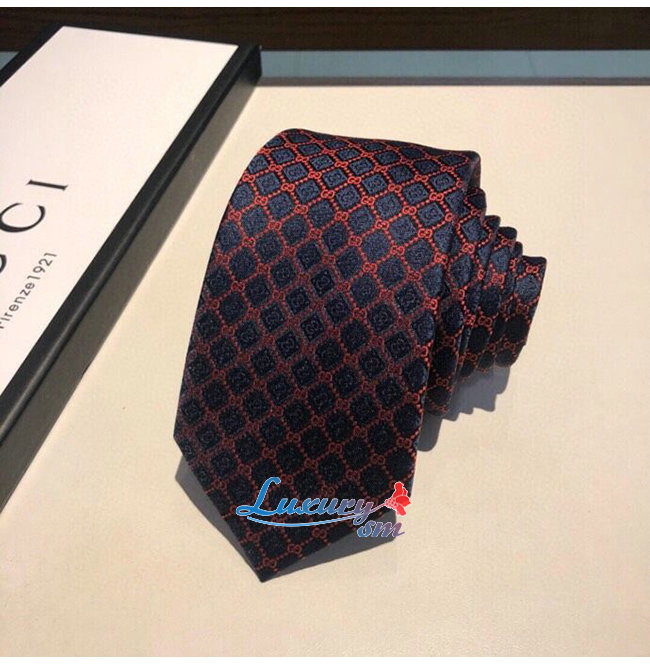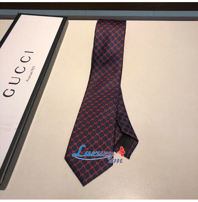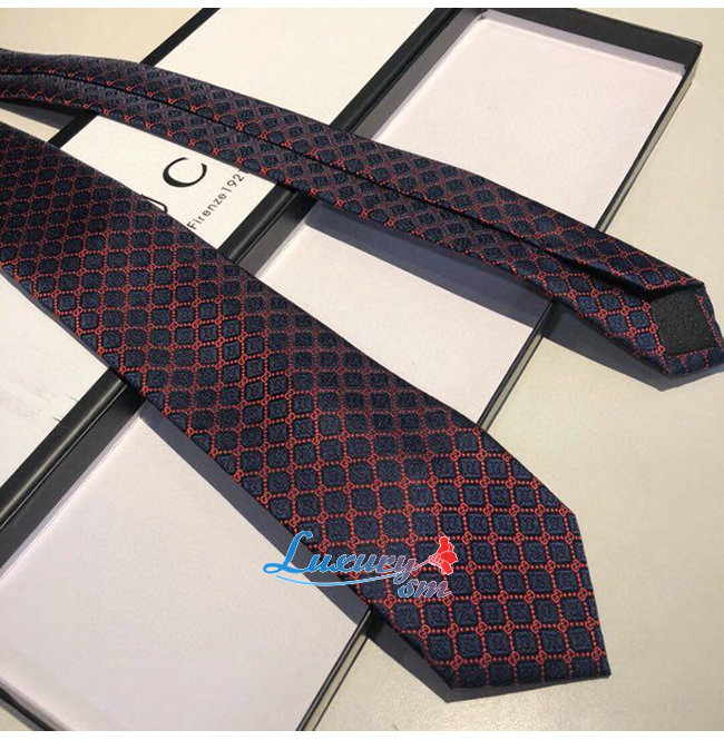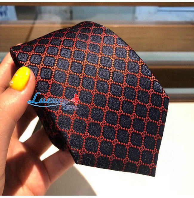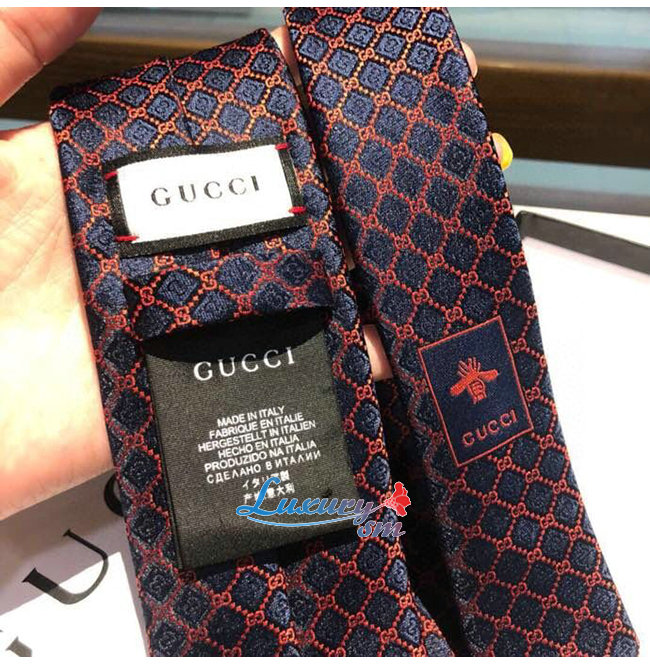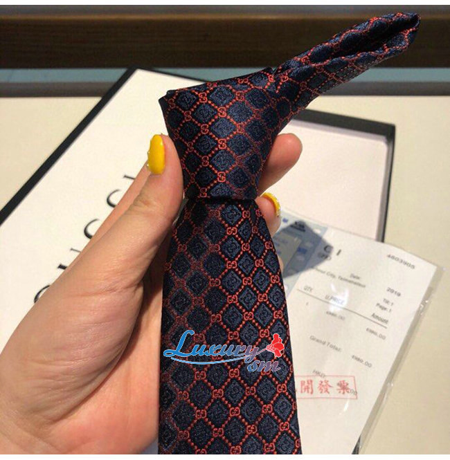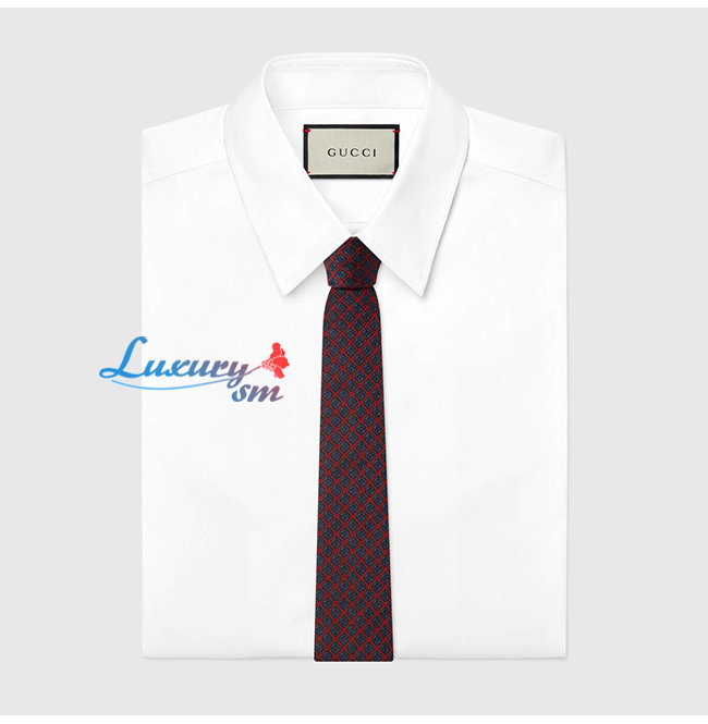 [스페셜오더]GUCCI-571800 4174 구찌 네이비/레드 실크 GG 롬버스 모티브 타이