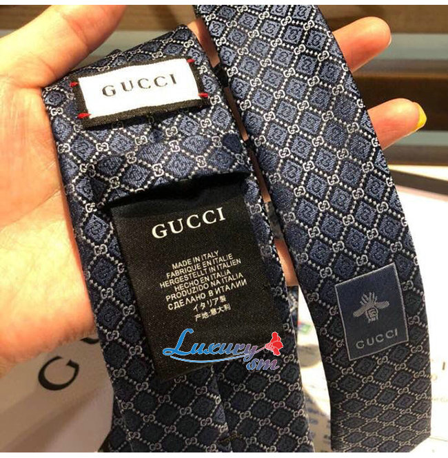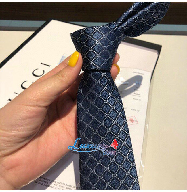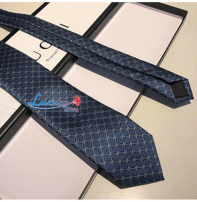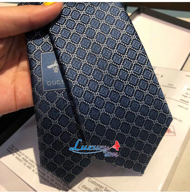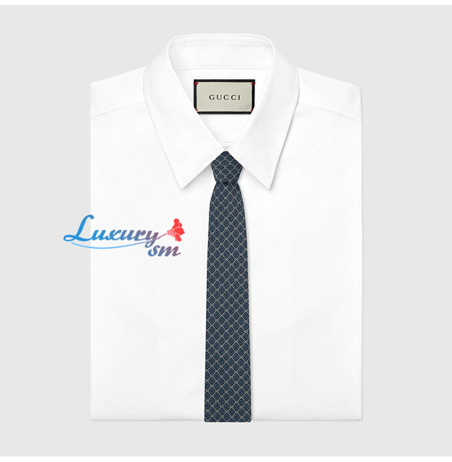 [스페셜오더]GUCCI-571800 4569 구찌 페리윙클/라이트 블루 실크 GG 롬버스 모티브 타이