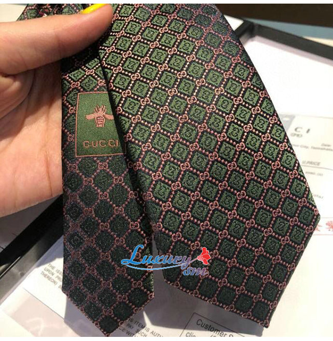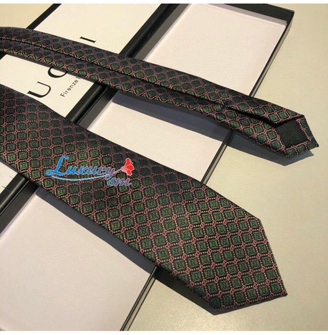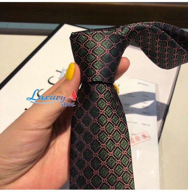 [스페셜오더]GUCCI-571800 4569 구찌 블랙/핑크 실크 GG 롬버스 모티브 타이