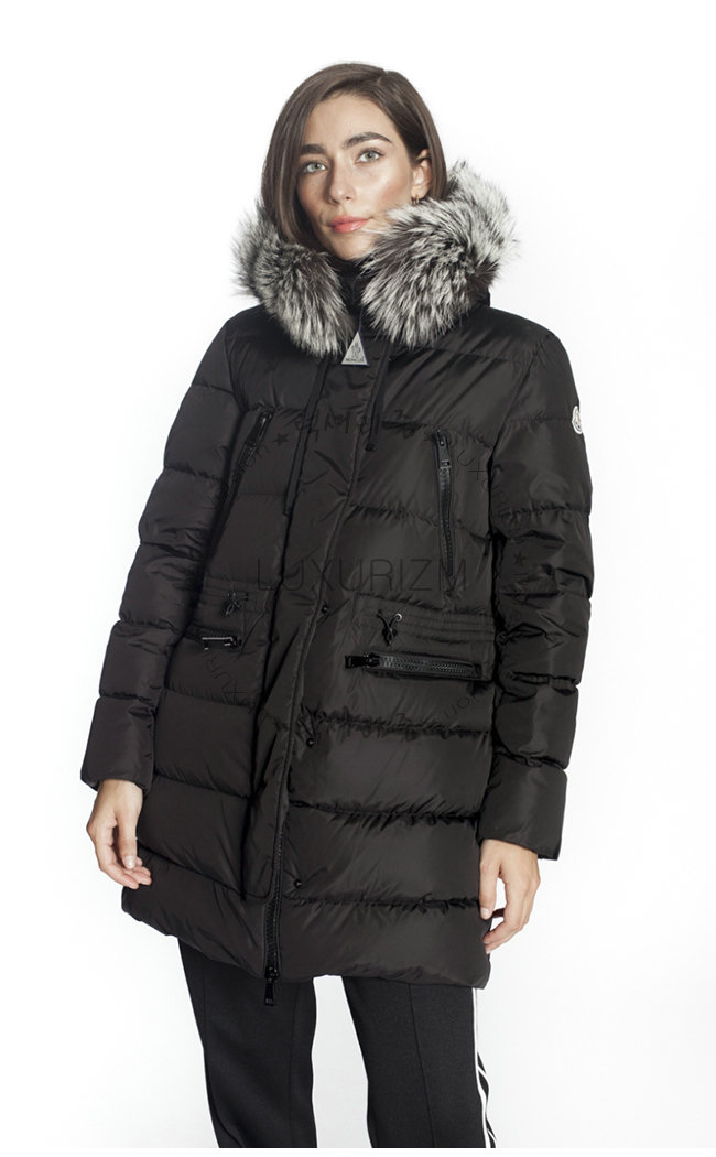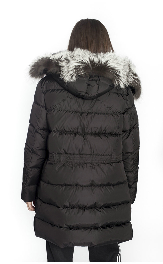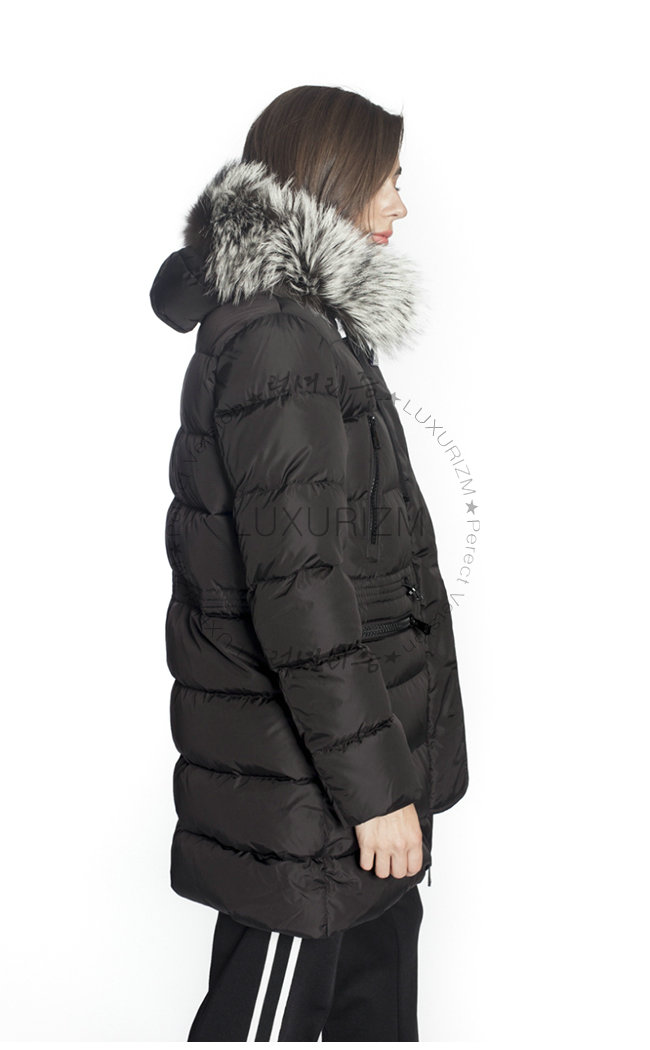 실버 폭스 퍼 트리밍의 부착 후드.