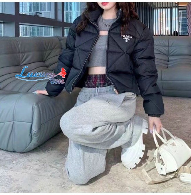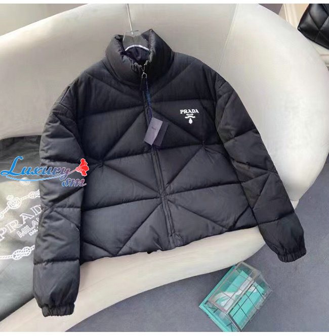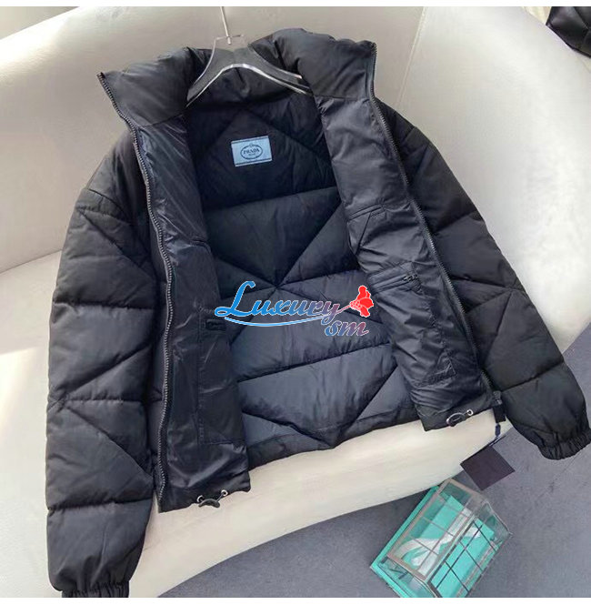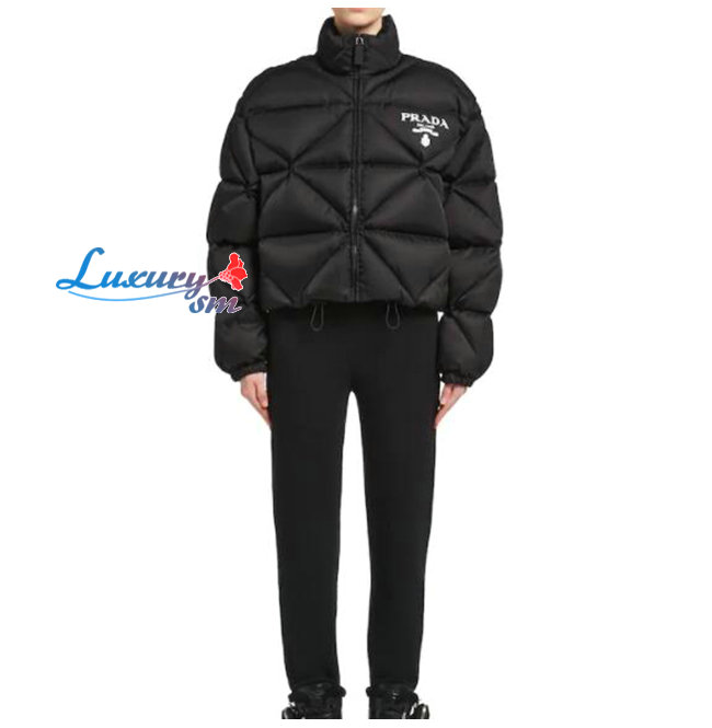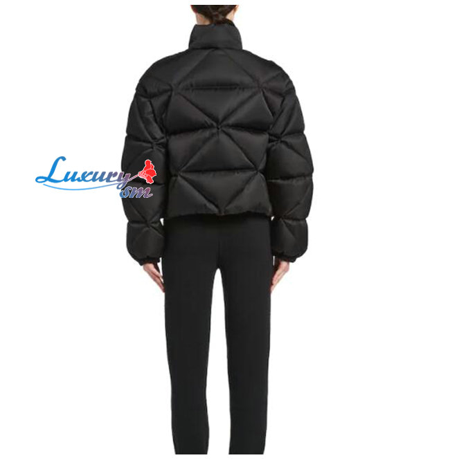 PRADA-291947 프라다 블랙 리나일론 개버딘 크롭 다운 재킷 여성용