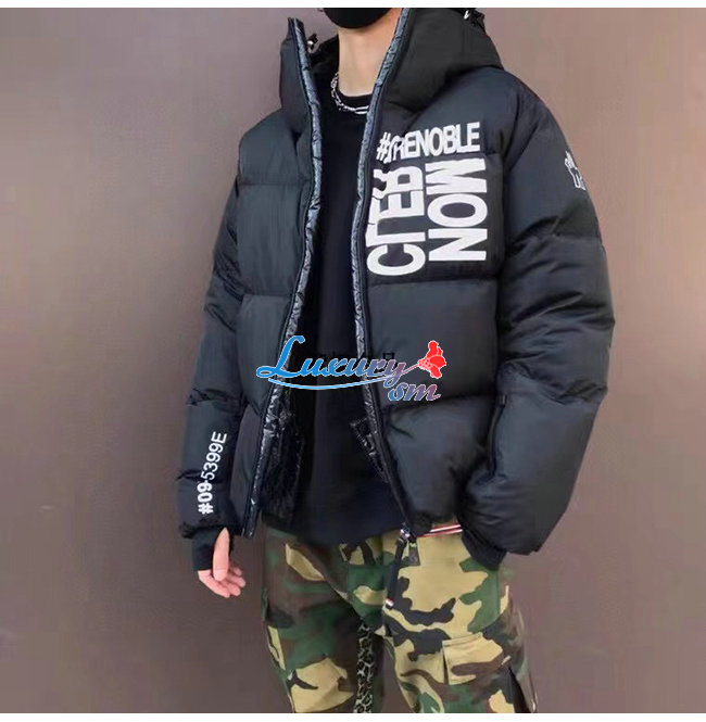 MONCLER-10161 몽클레어 블랙 나일론 프린트 장식 패딩 남성용