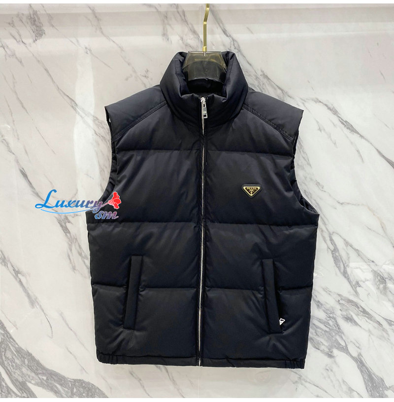 PRADA-11236 프라다 블랙 트라이앵글 로고 패딩 조끼 남성용