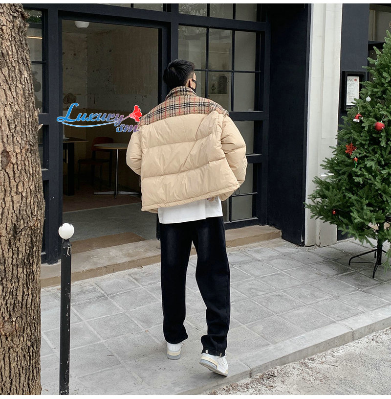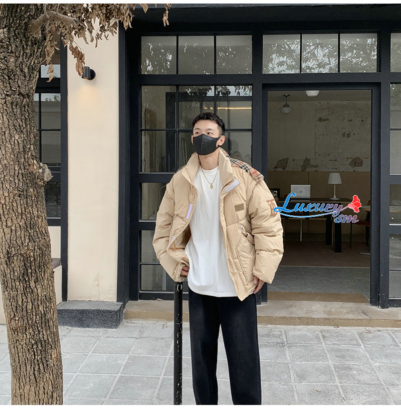 BURBERRY-12188 버버리 아이보리 체크 무늬 시어링 장식 패딩 남여공용