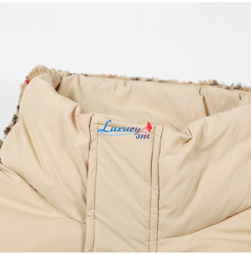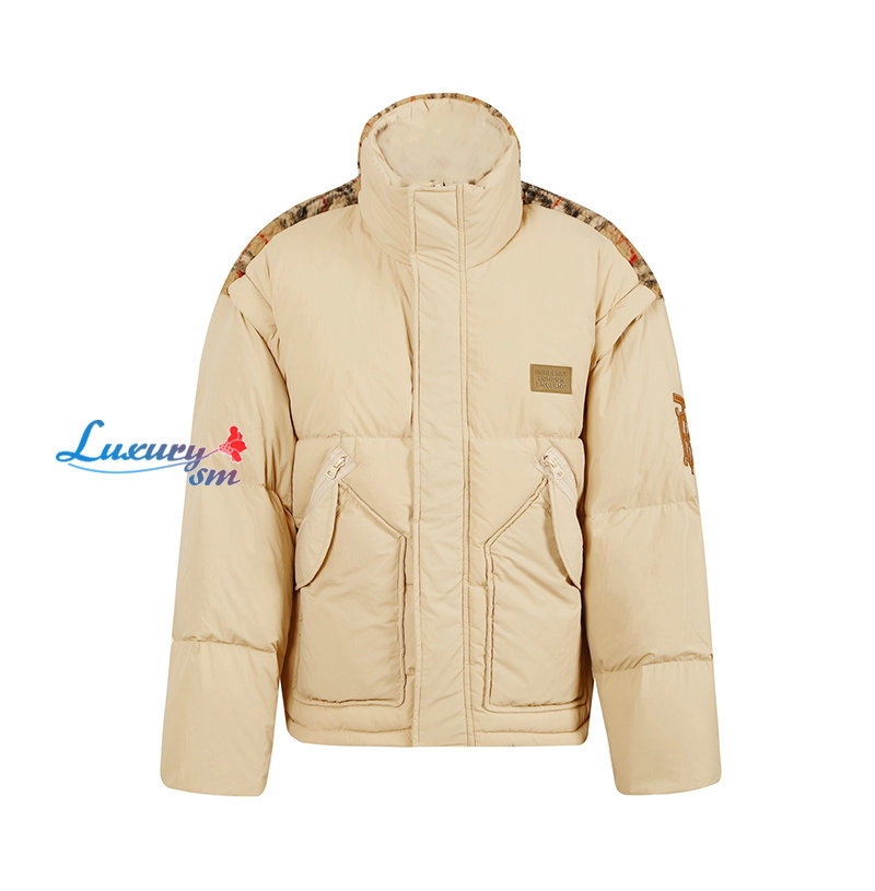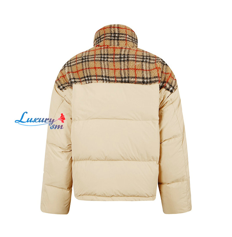 BURBERRY-12186 버버리 베이지 체크 무늬 시어링 장식 패딩 남여공용