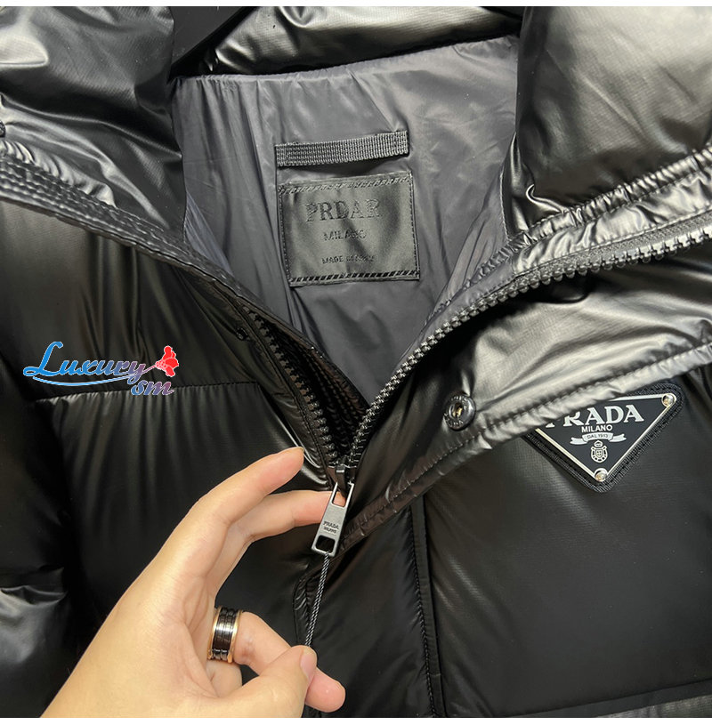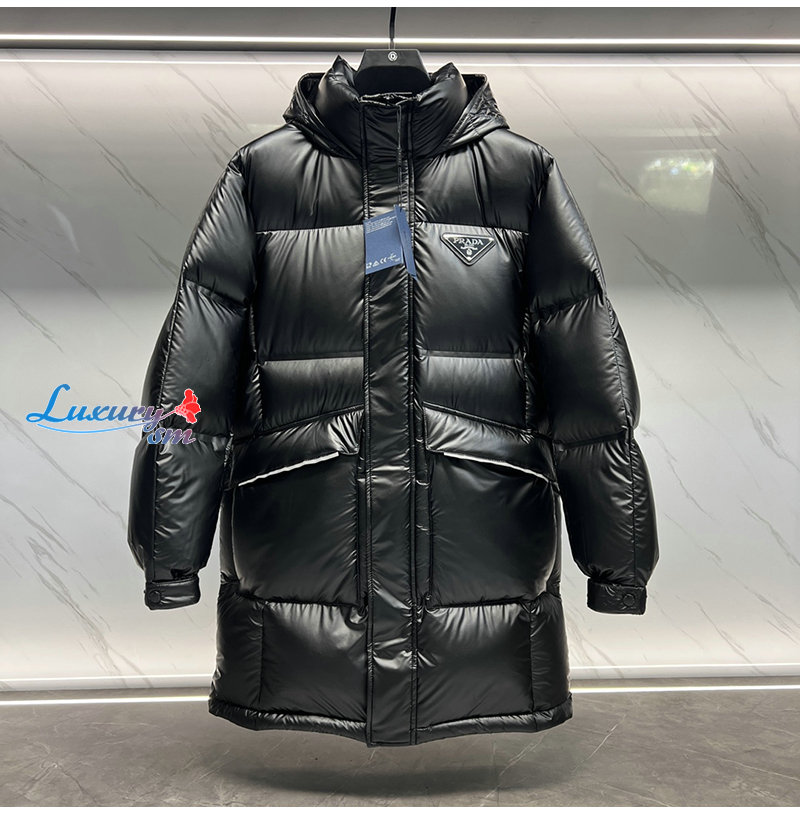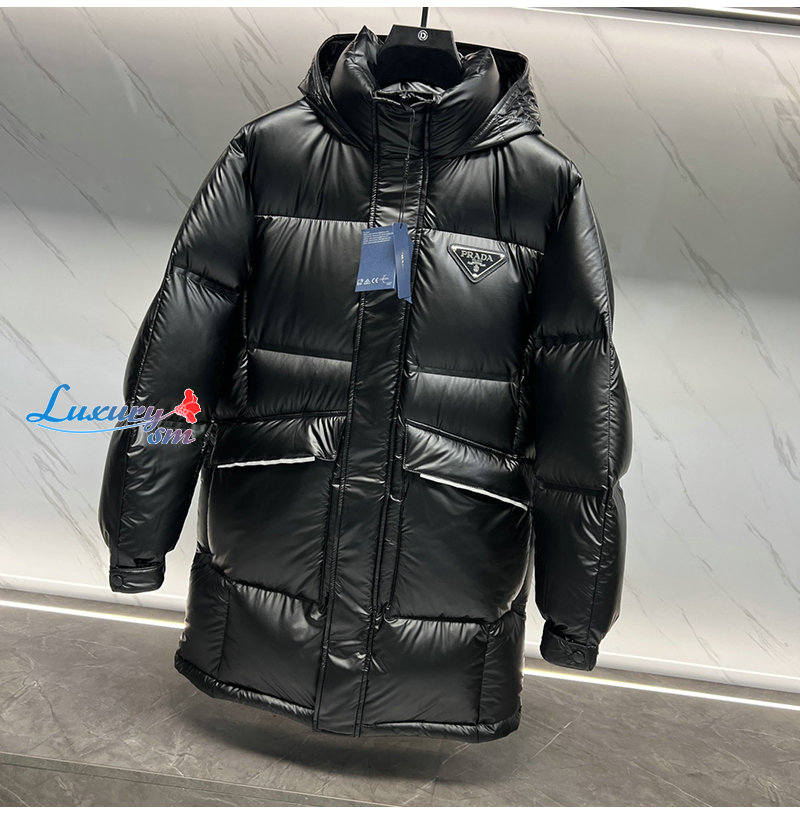 PRADA-12198 프라다 블랙 트라이앵글 로고 미디엄 패딩 남성용