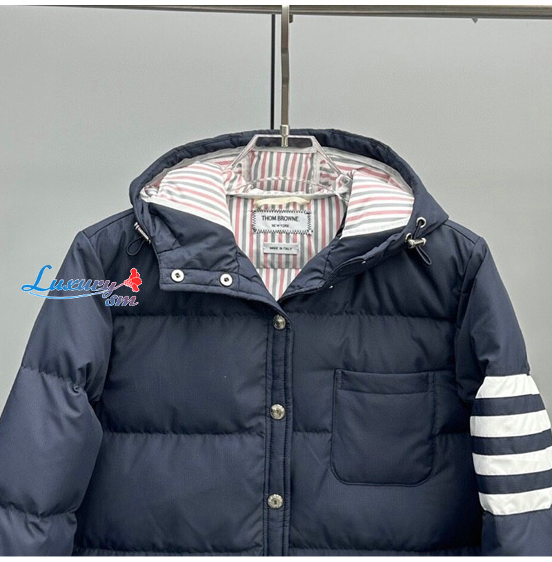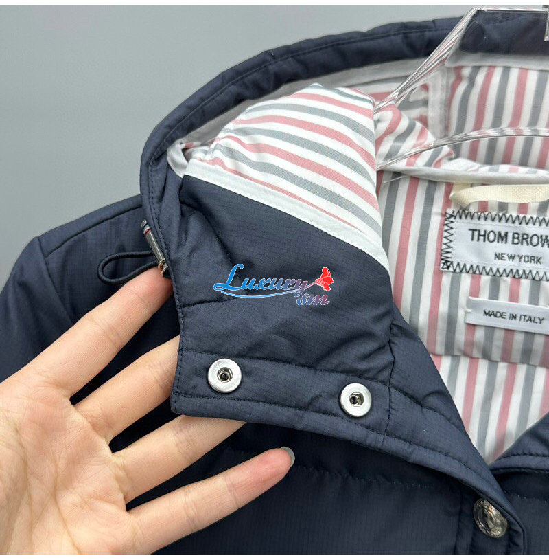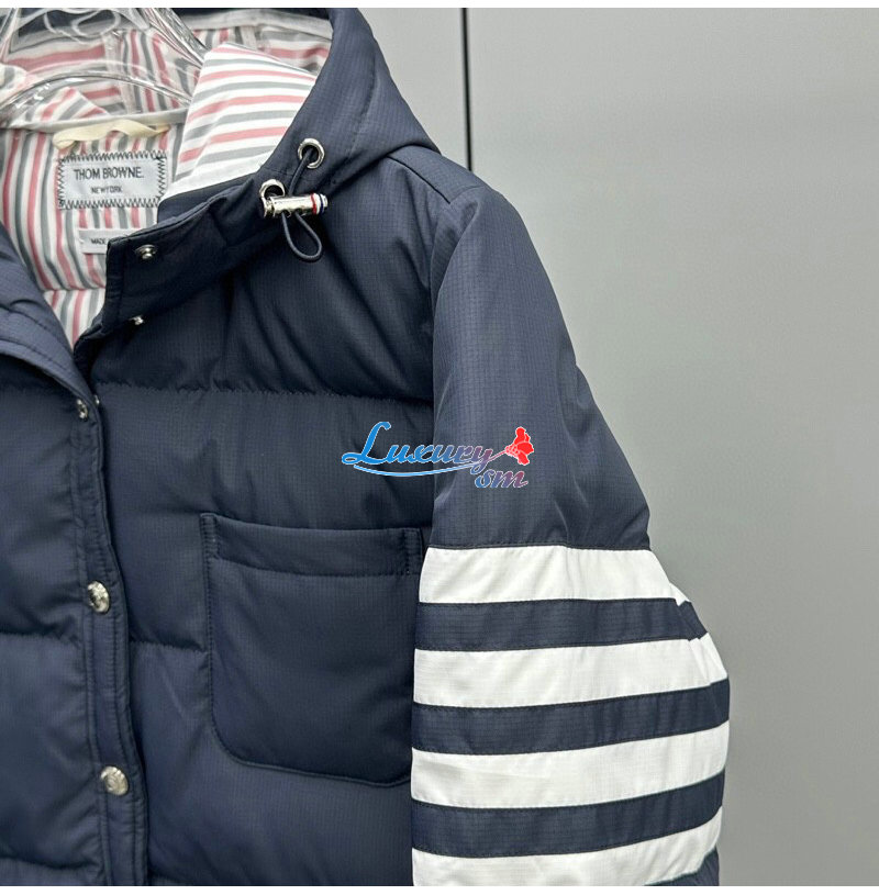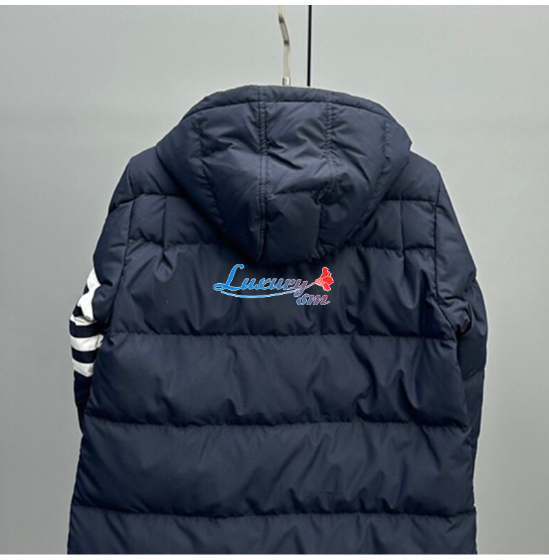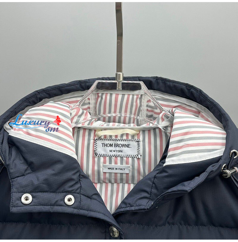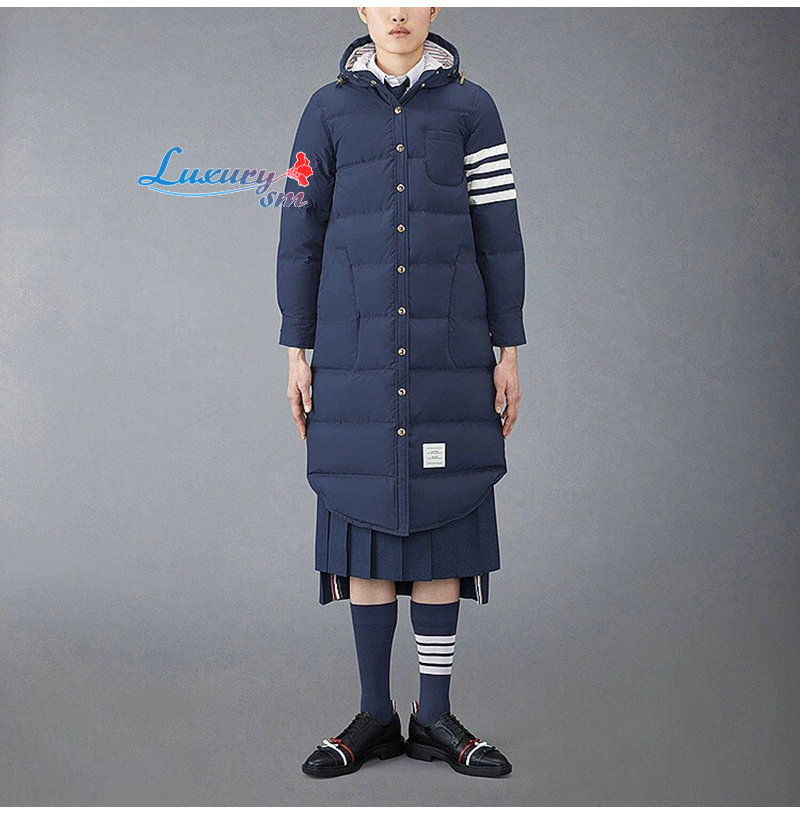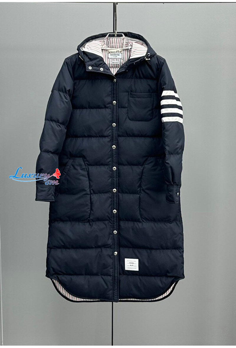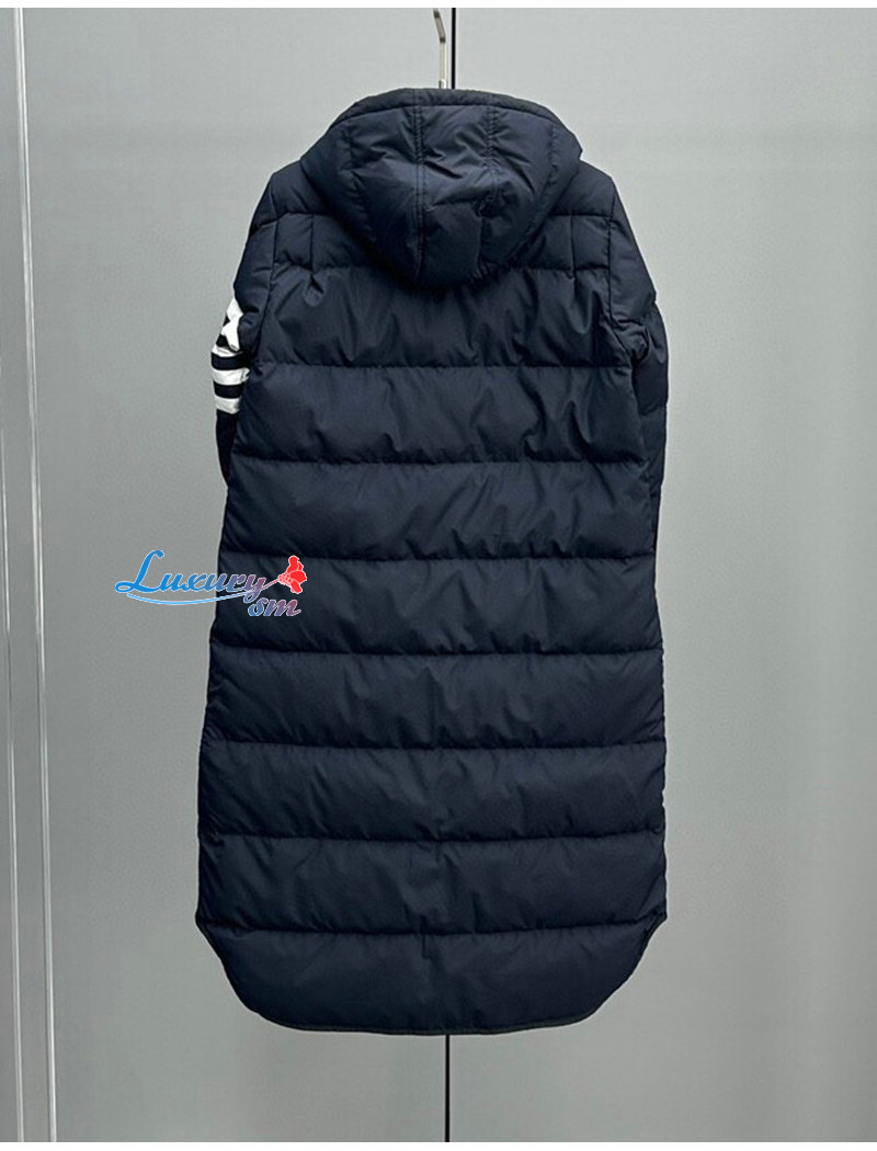THOM BROWNE-100211 톰 브라운 네이비 스트라이프 장식 롱 패딩 여성용