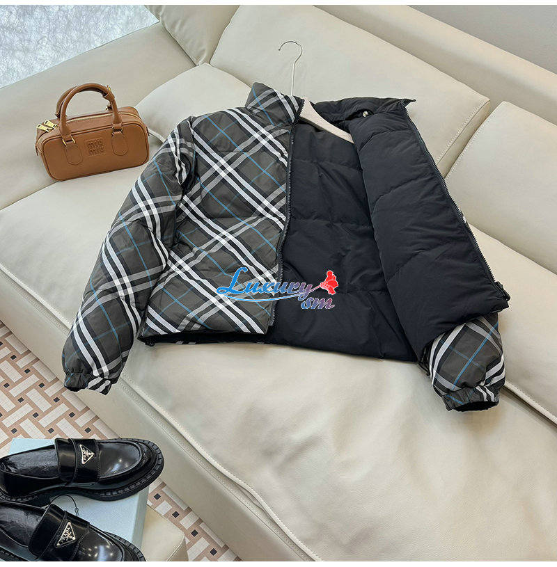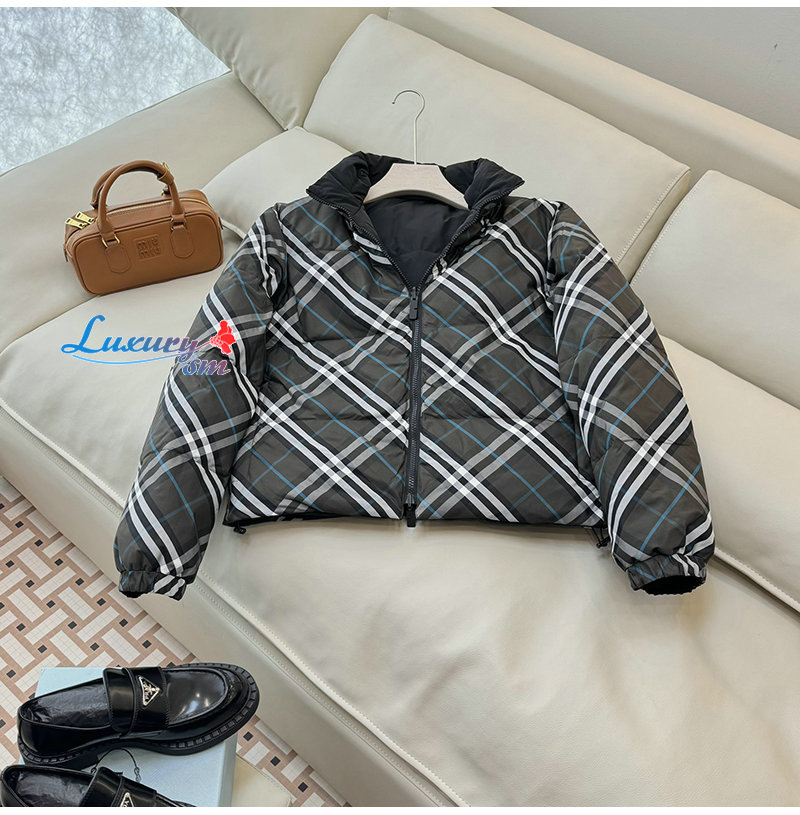 BURBERRY-80961311 버버리 블랙 리버시블 체크 나일론 퍼퍼 재킷 여성용