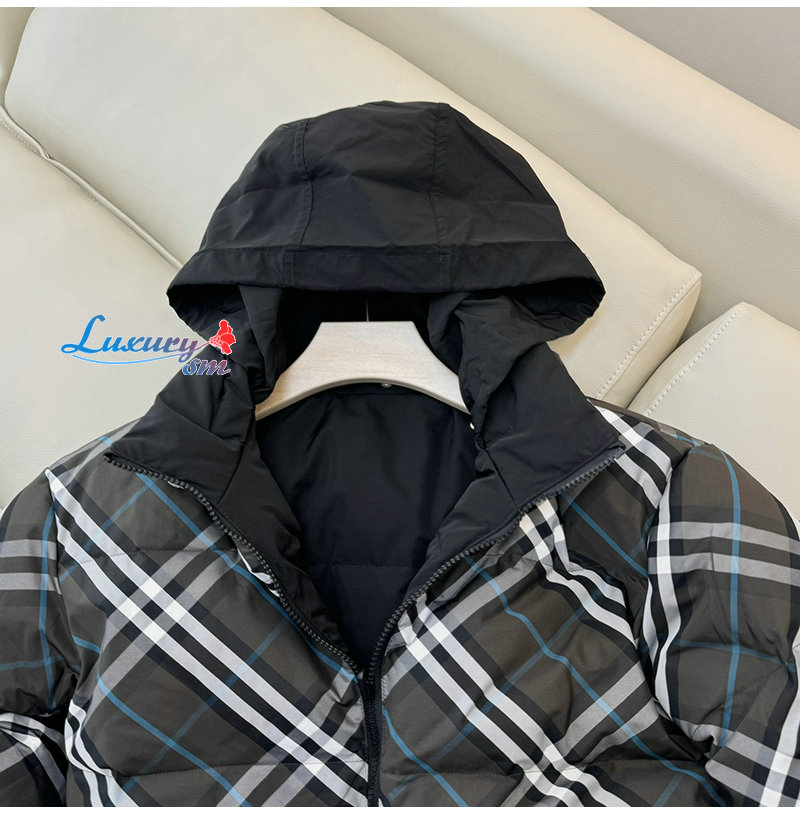 접어 넣을 수 있는 후드가 특징. 버버리 체크가