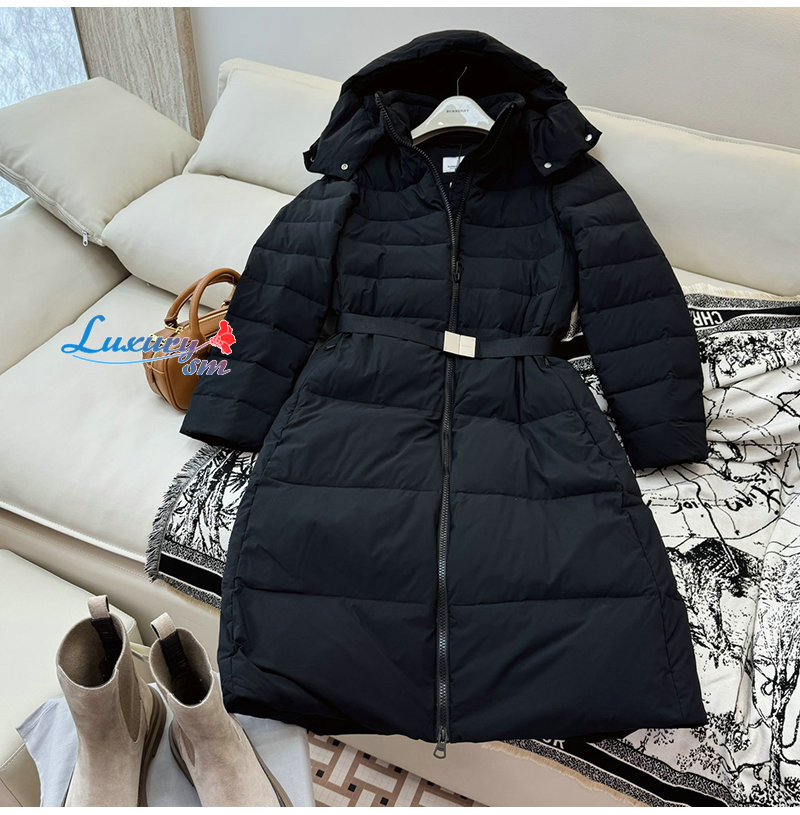 BURBERRY-80727151 버버리 블랙 벨트 퍼퍼 코트 여성용