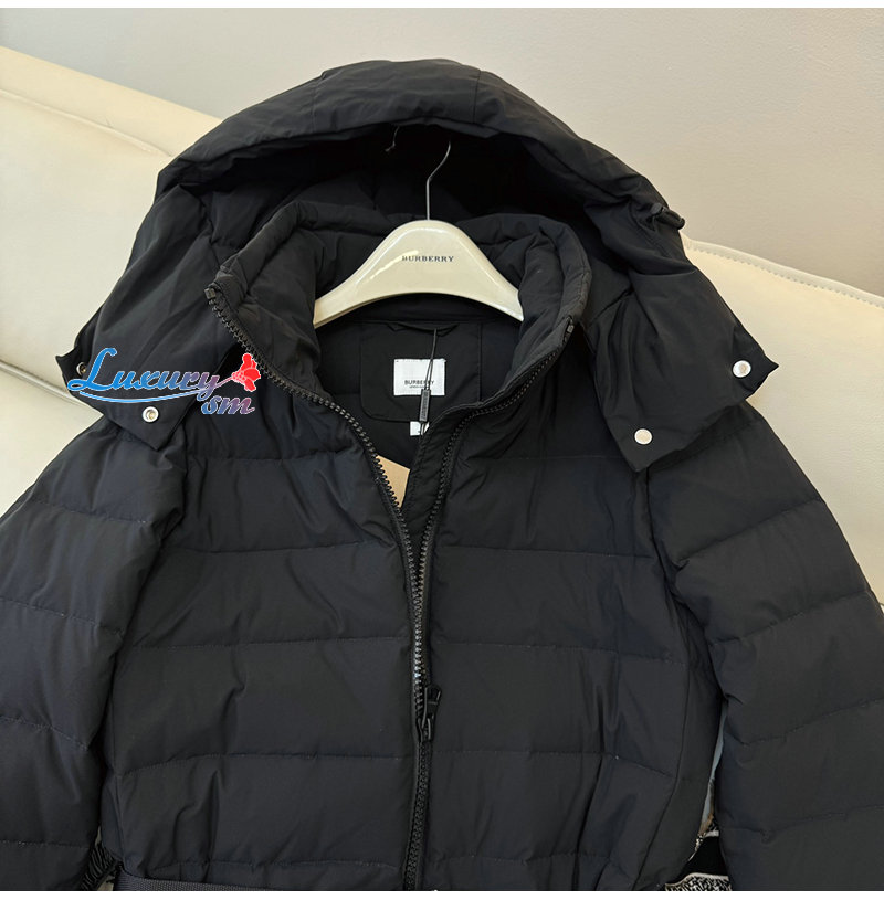 BURBERRY-80721371 버버리 블랙 벨트 퍼퍼 재킷 여성용