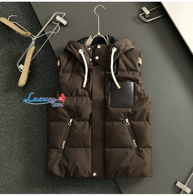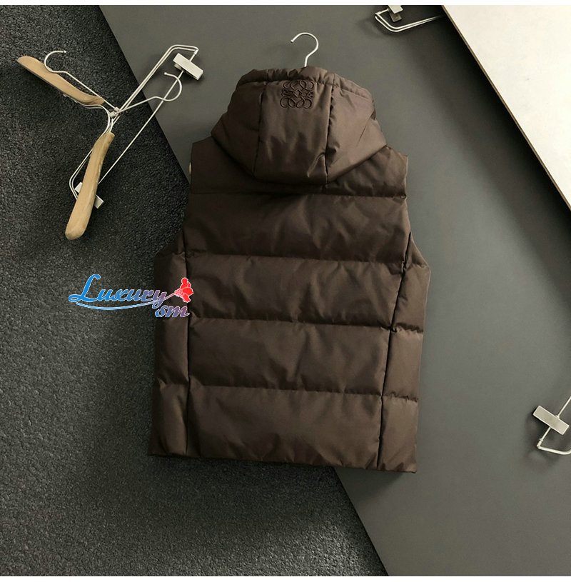 LOEWE-111412 로에베 브라운 로고 패치 장식 패딩 조끼 남성용