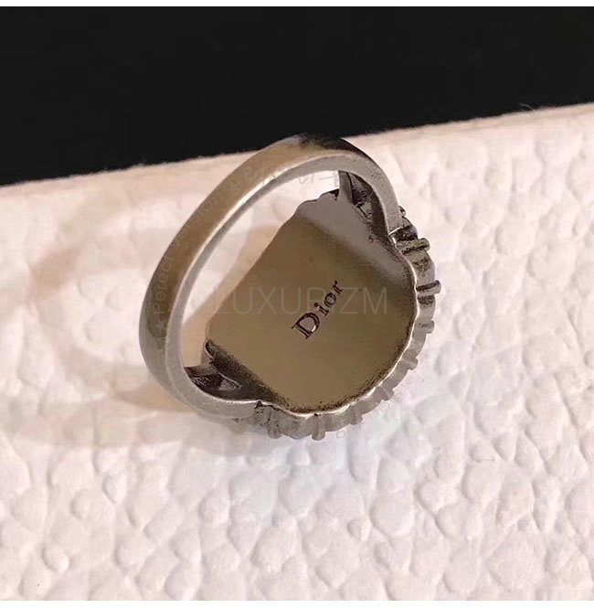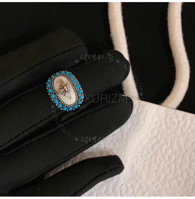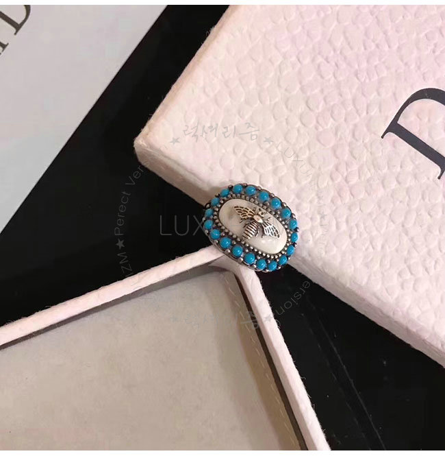 DIOR-R0428 디올 팔라듐 마감 빈티지 메탈 블루 보헤미안 반지