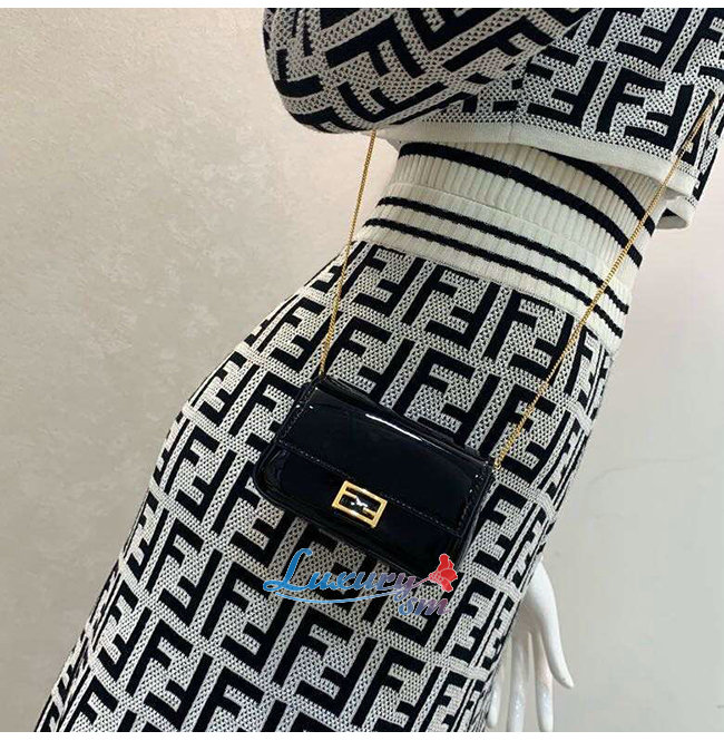 [스페셜오더]FENDI-7AR798 펜디 블랙 페이턴트 송아지 가죽 나노 바게트 참