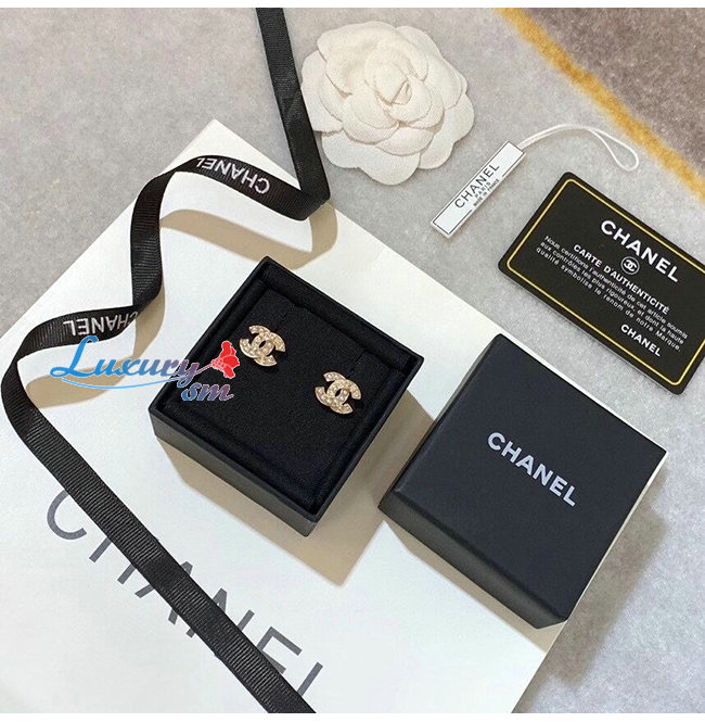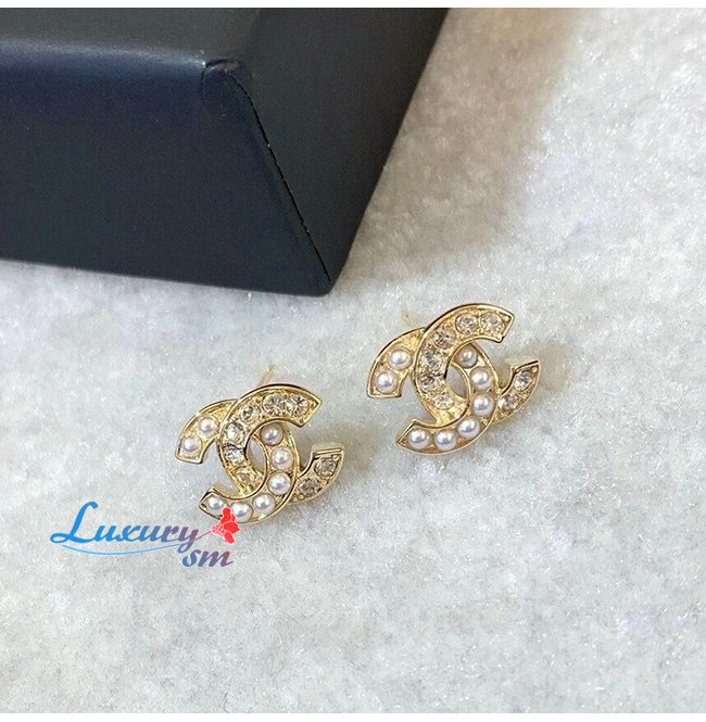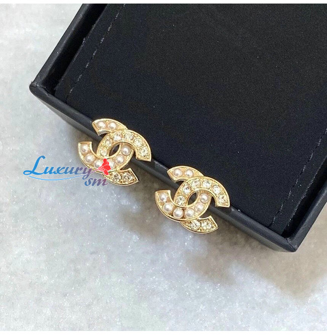 CHANEL-09041 샤넬 골드 펄 크리스탈 장식 귀걸이