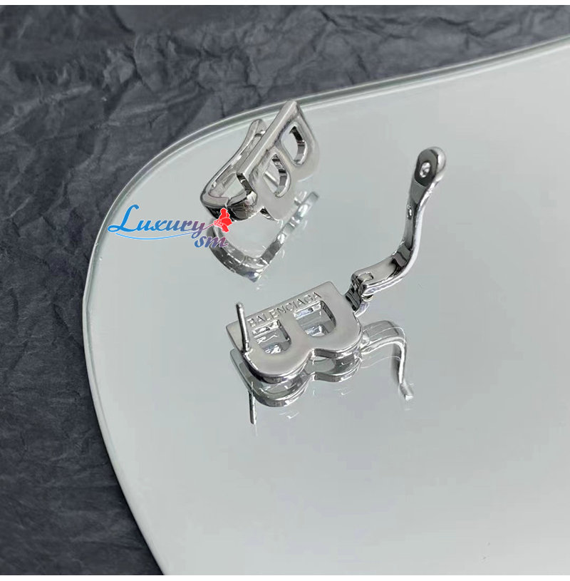 BALENCIAGA-01161 발렌시아가 실버 B 펜던트 이어링