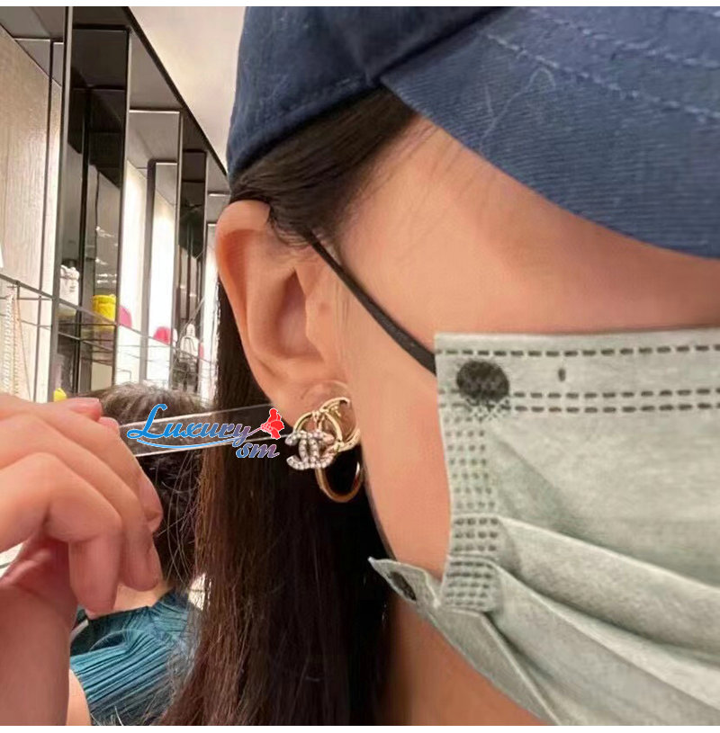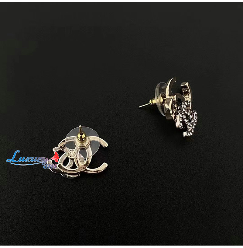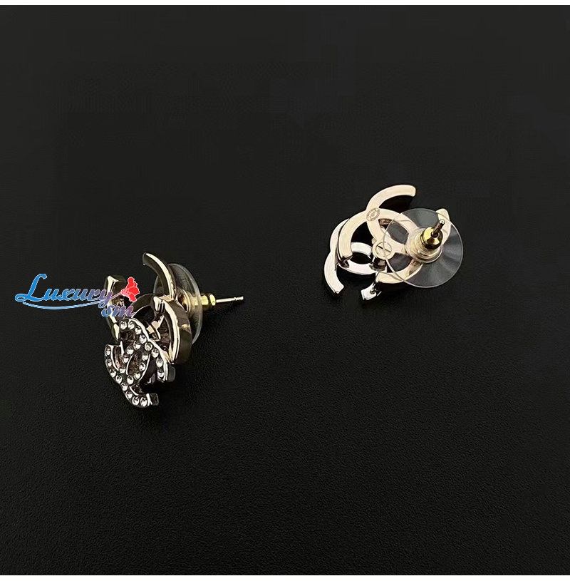 CHANEL-7071 샤넬 골드 크리스탈 장식 CC 로고 귀걸이