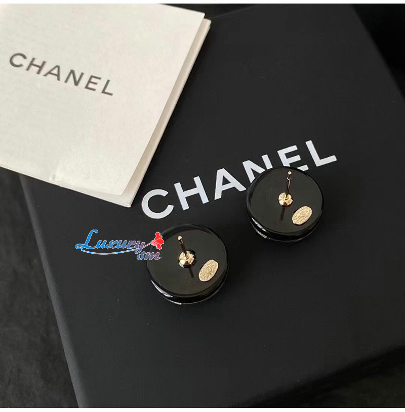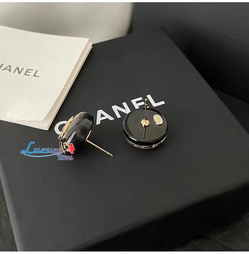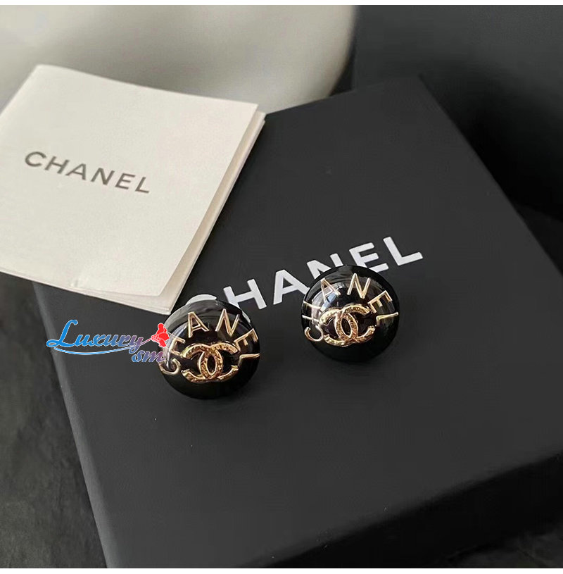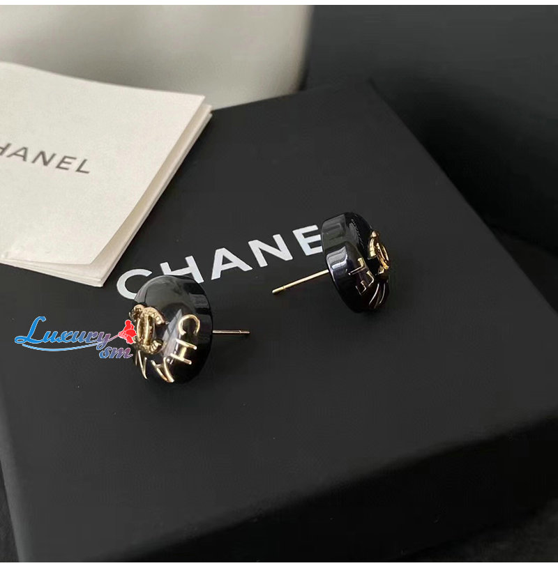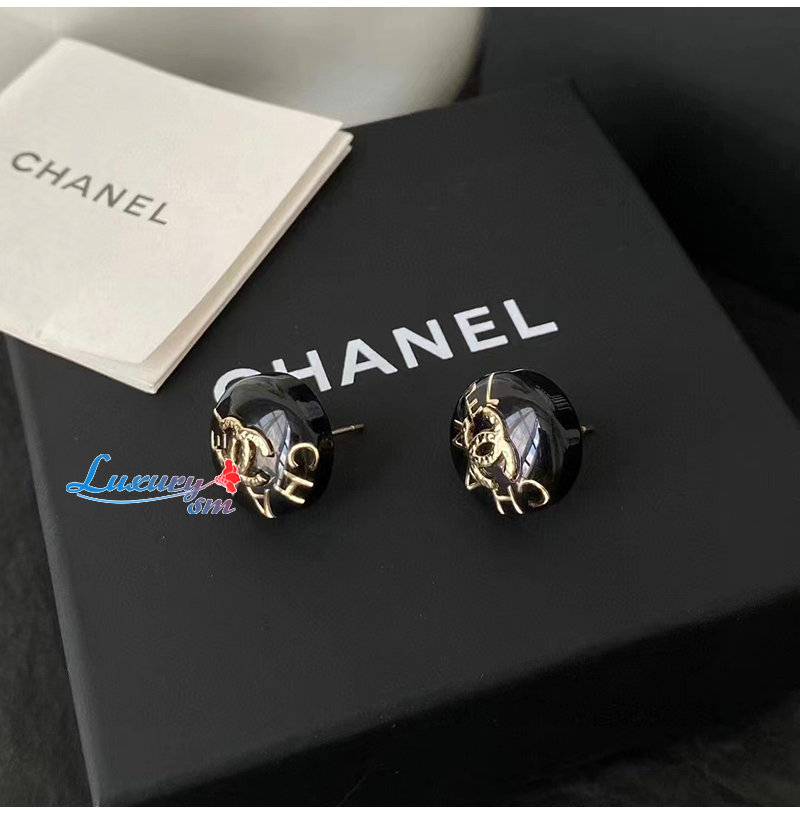 CHANEL-7067 샤넬 블랙 에나멜 CC 로고 귀걸이