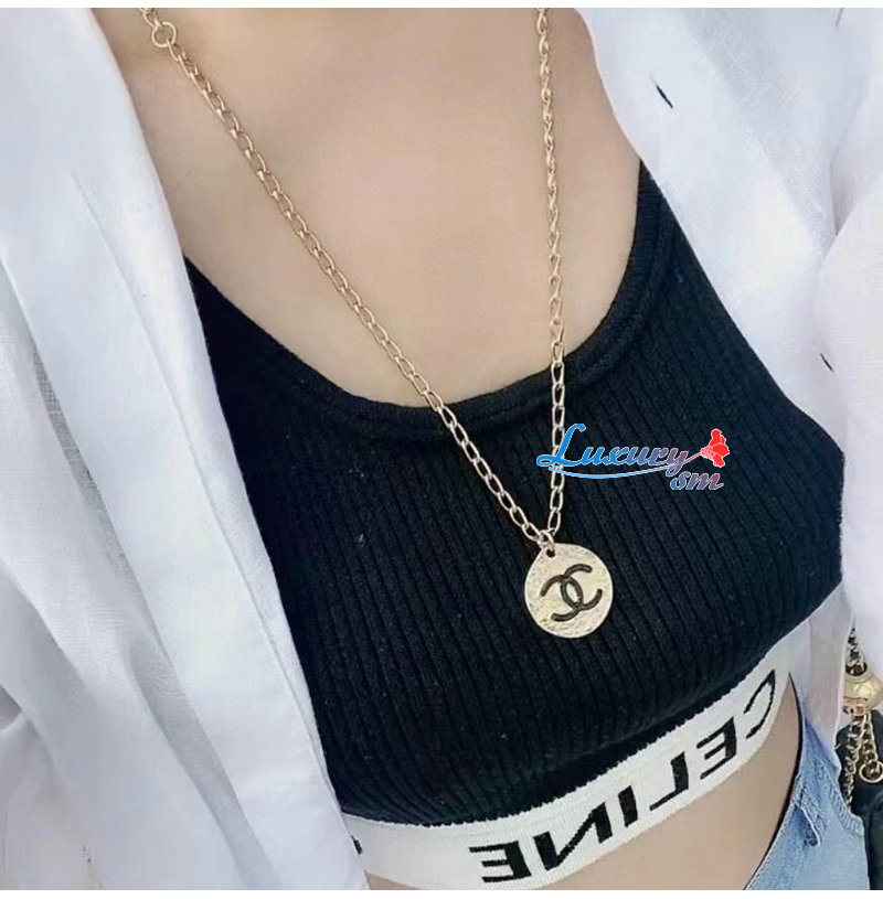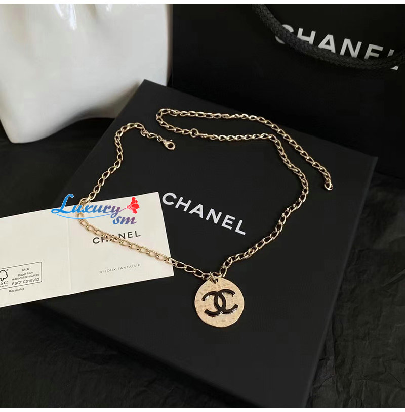 CHANEL-7055 샤넬 골드 에나멜 CC 로고 목걸이