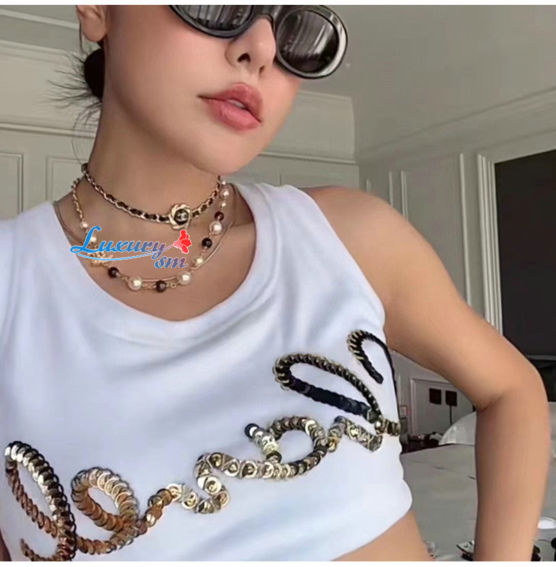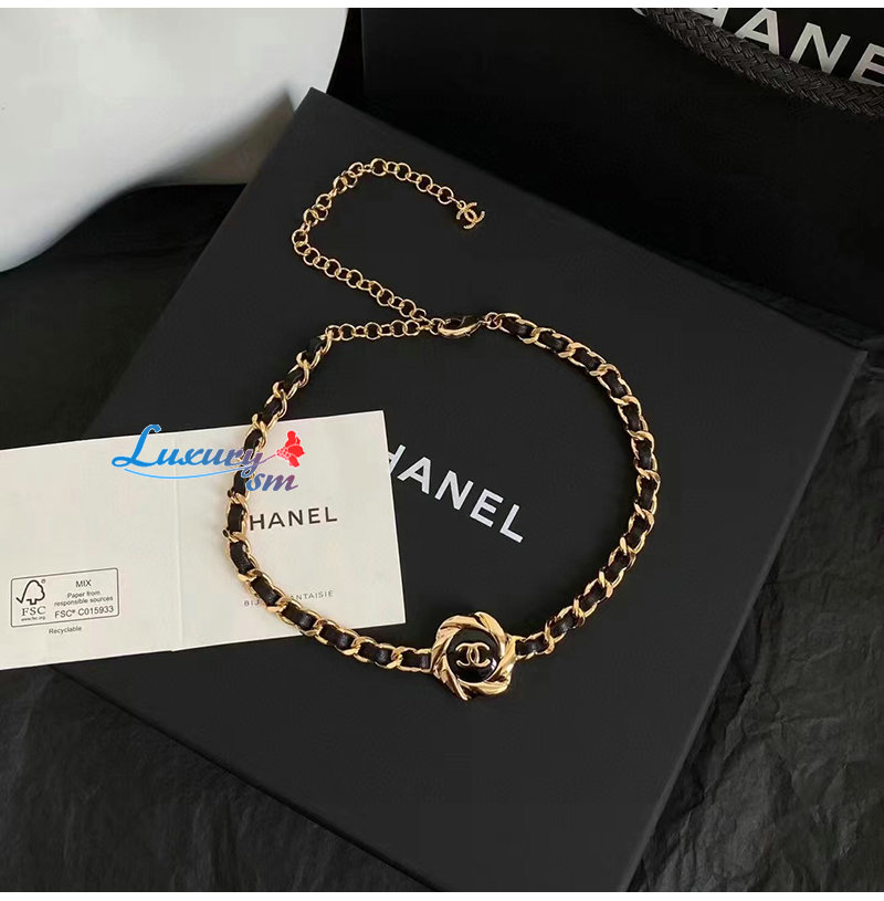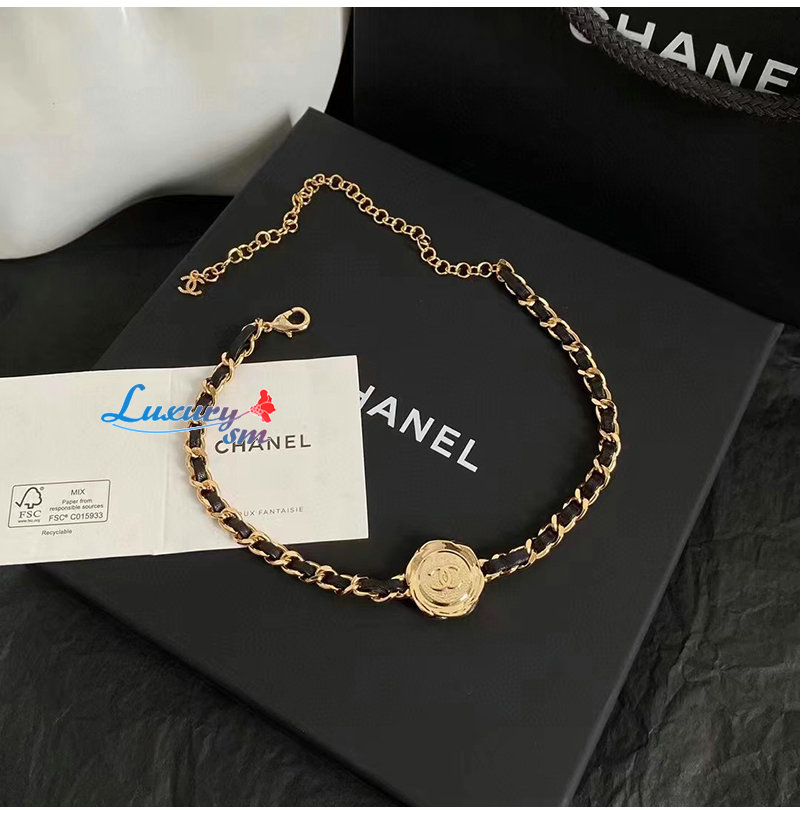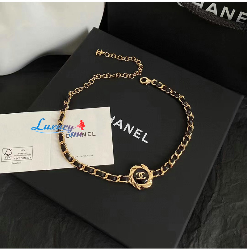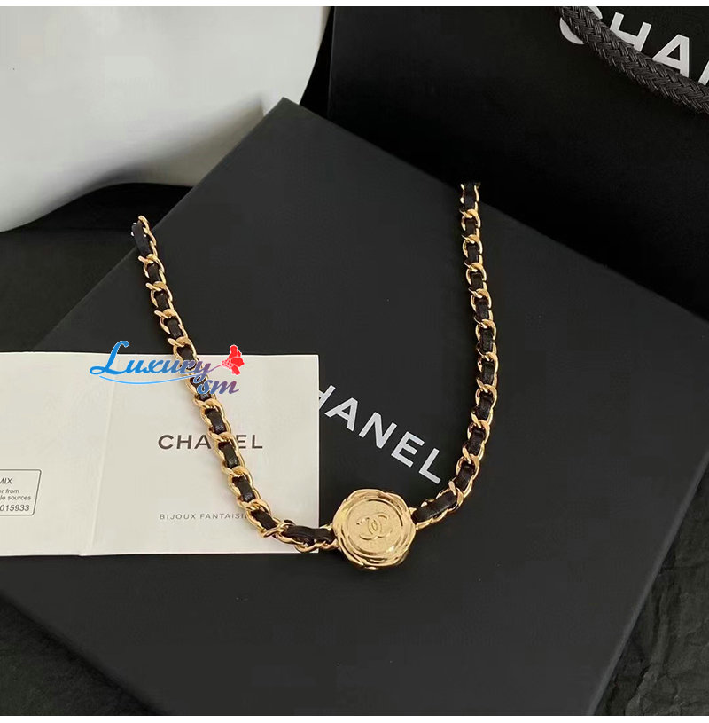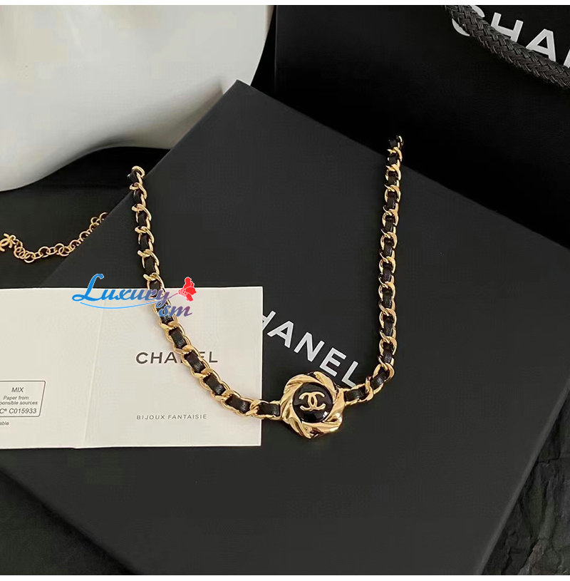 CHANEL-7054 샤넬 골드/블랙 CC 로고 목걸이