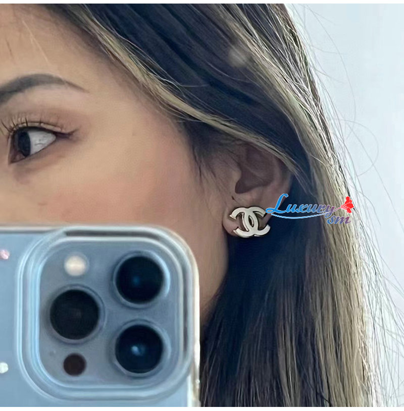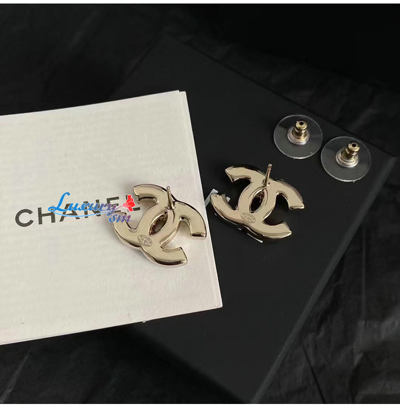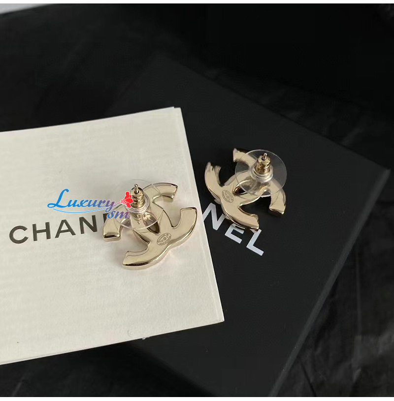 CHANEL-7049 샤넬 화이트/골드 에나멜 CC 로고 귀걸이