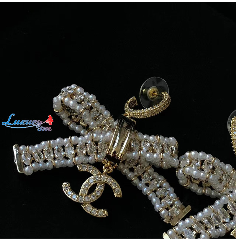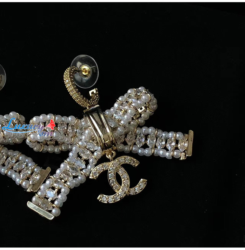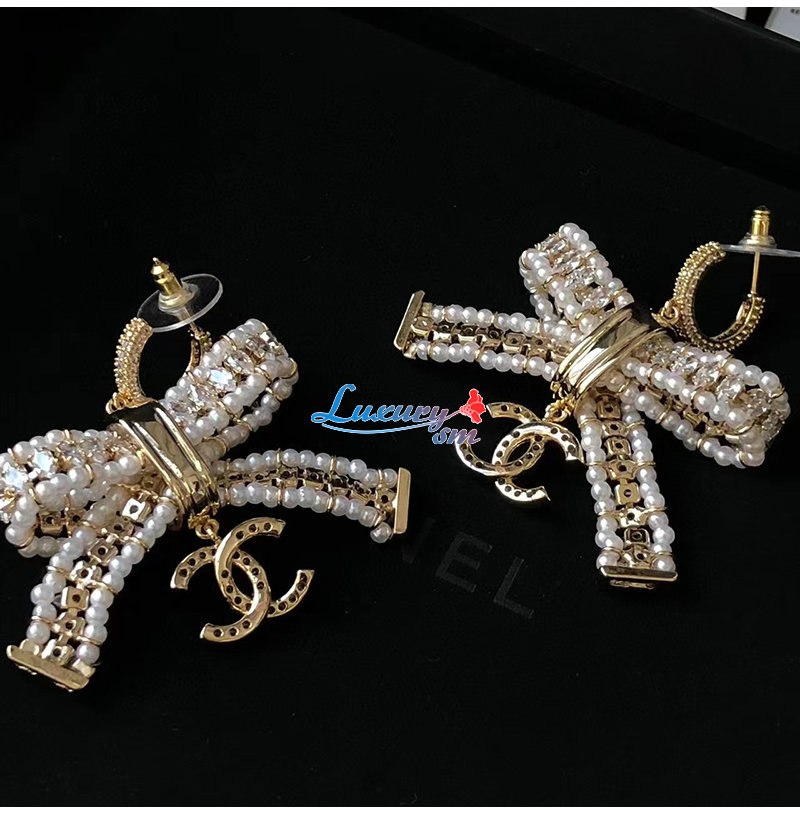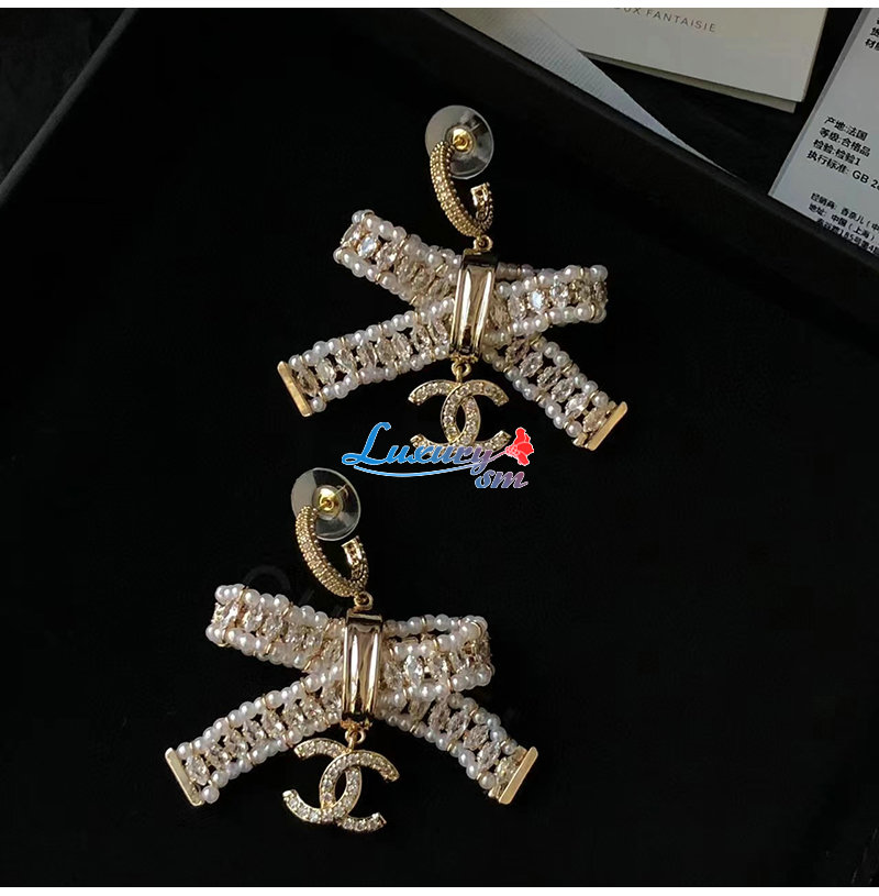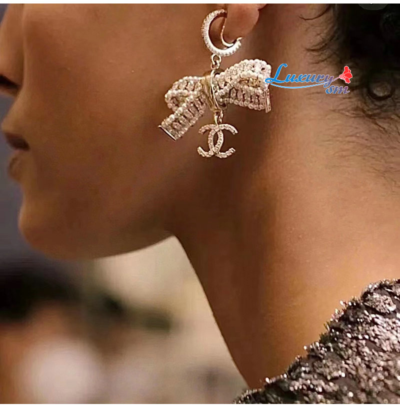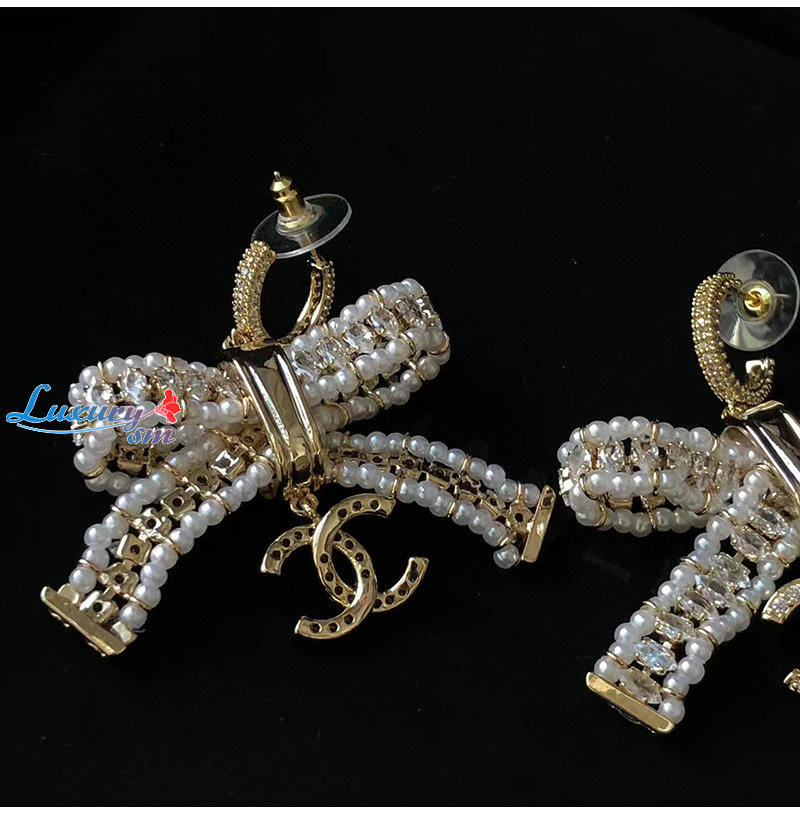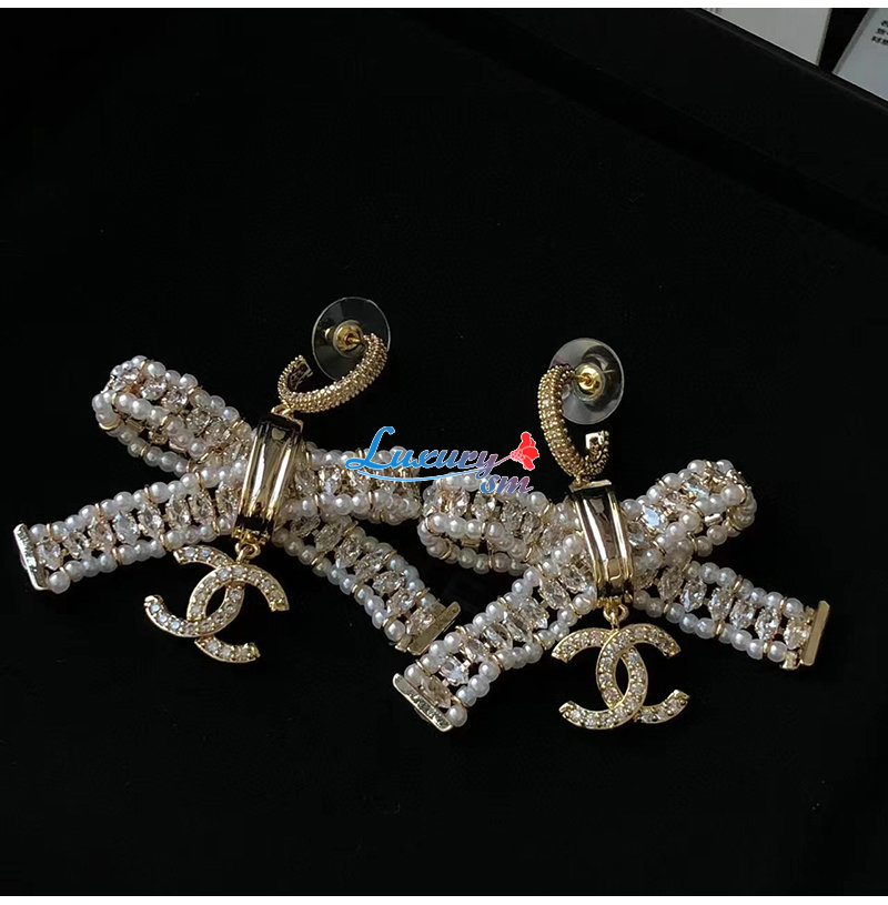 CHANEL-7164 샤넬 골드 크리스탈 리본 귀걸이