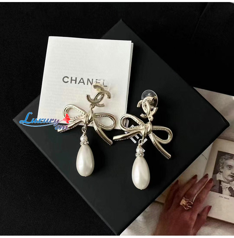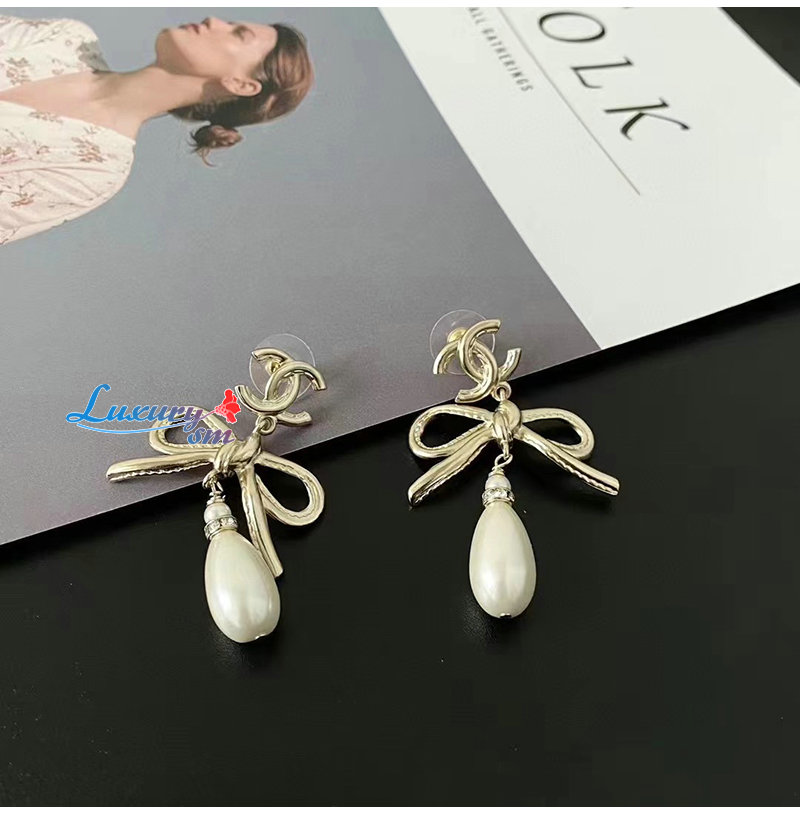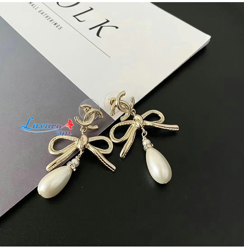 CHANEL-7032 샤넬 골드 레진 리본 귀걸이