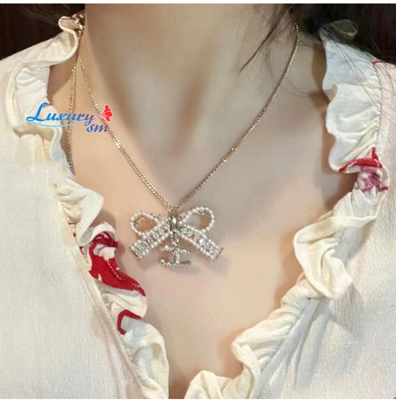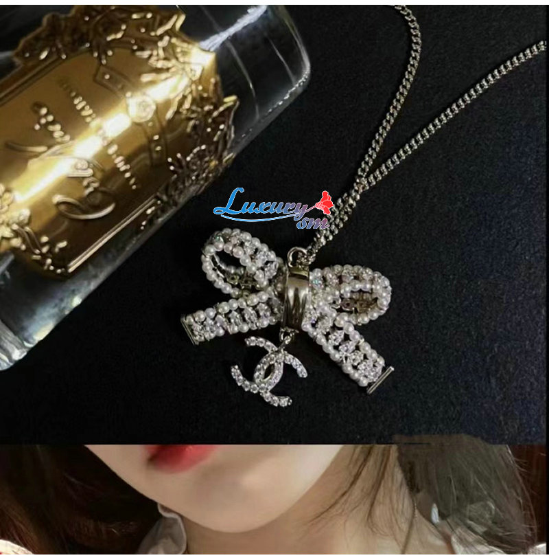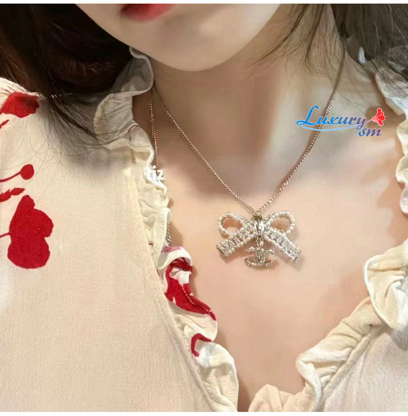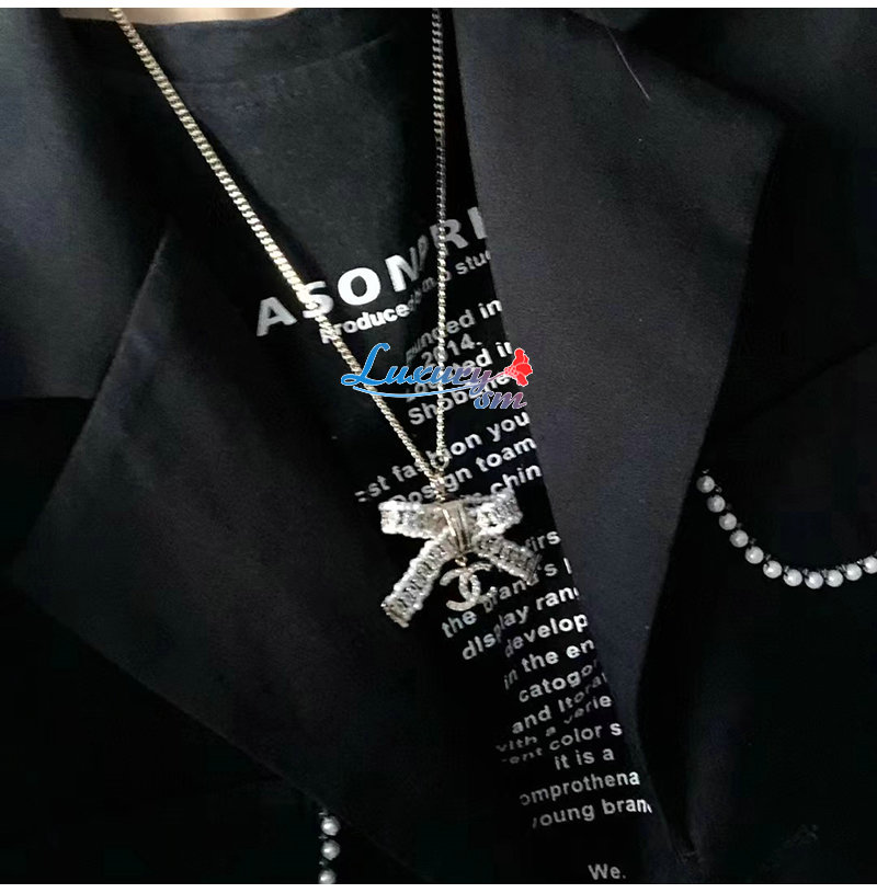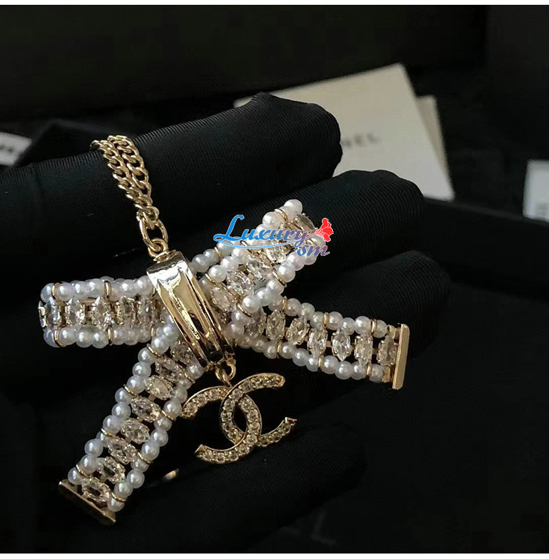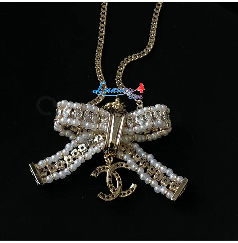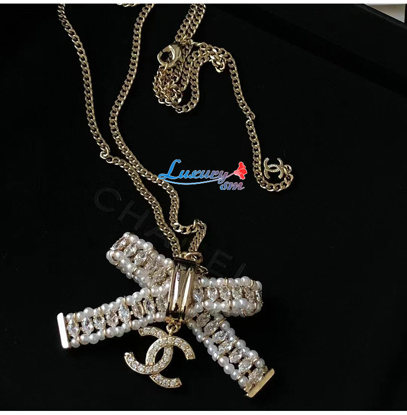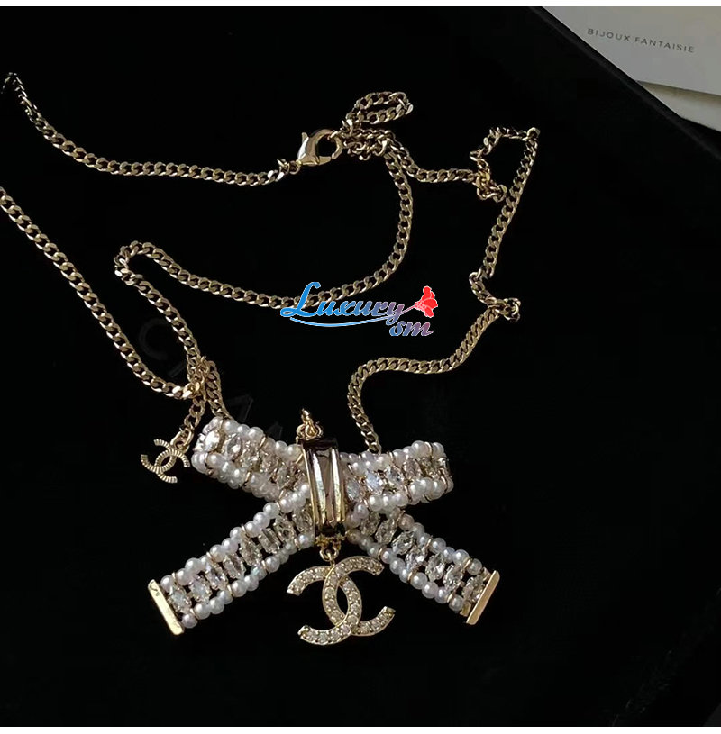 CHANEL-7162 샤넬 골드 크리스탈 리본 장식 목걸이