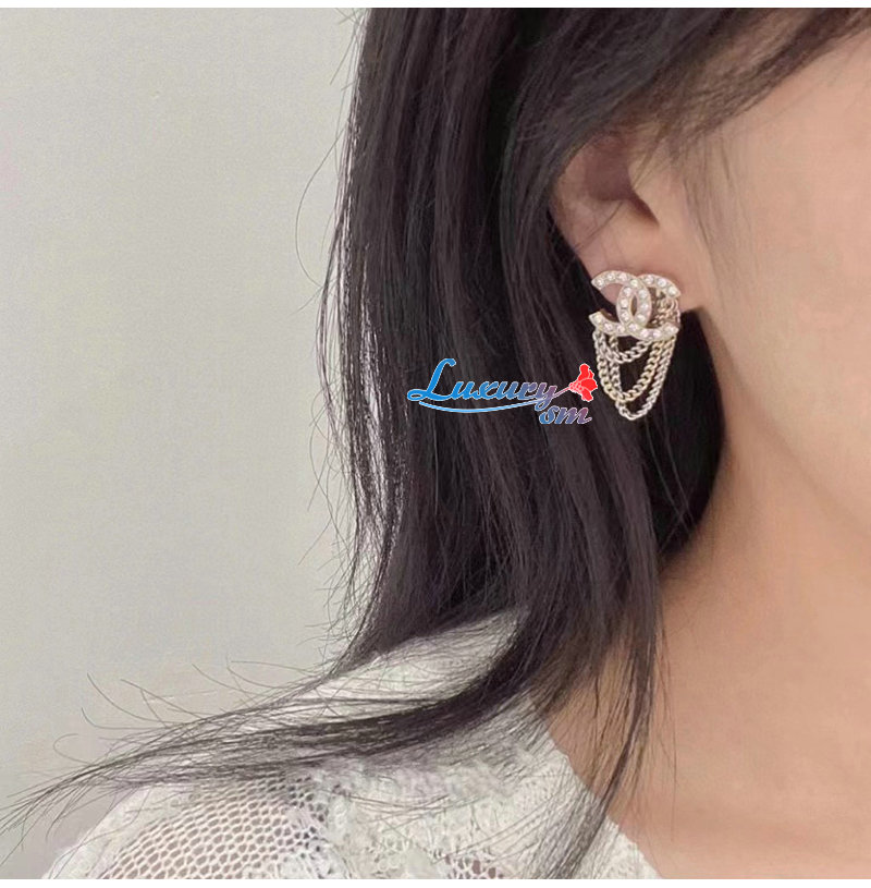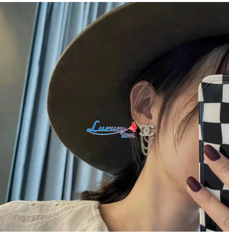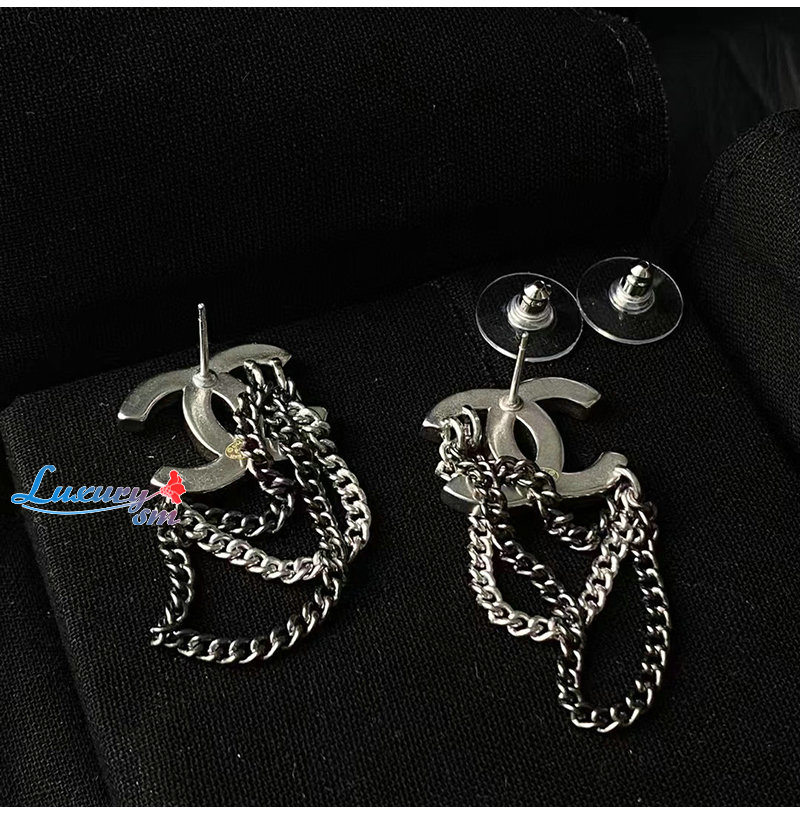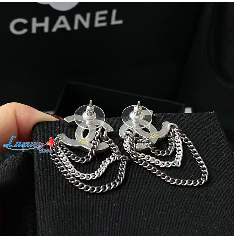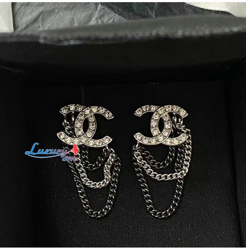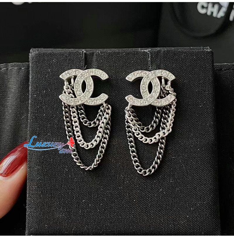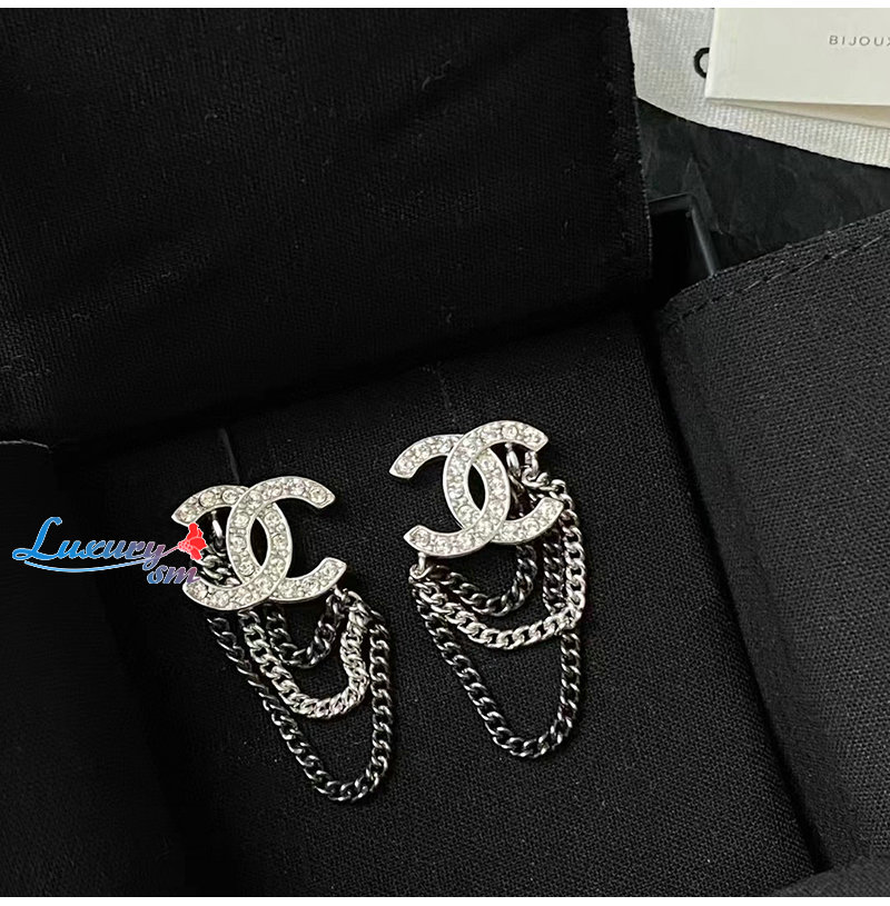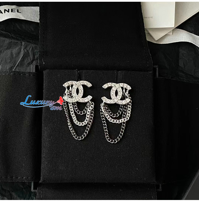 CHANEL-7111 샤넬 실버 크리스탈 체인 CC 로고 귀걸이
