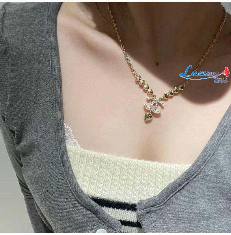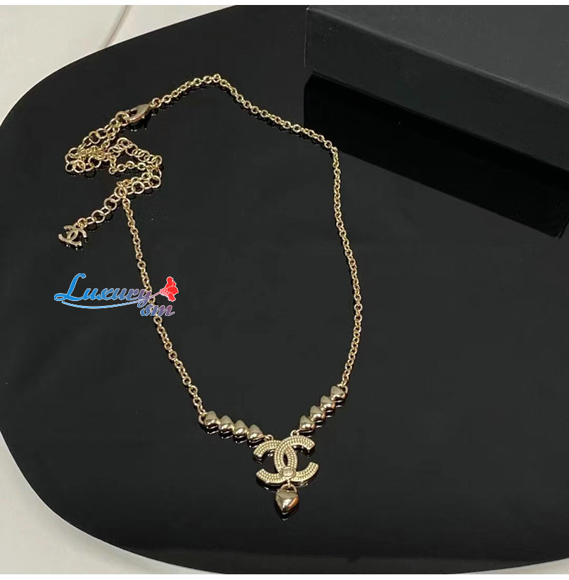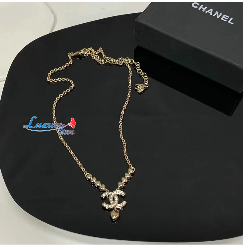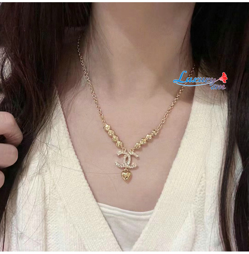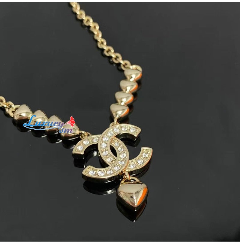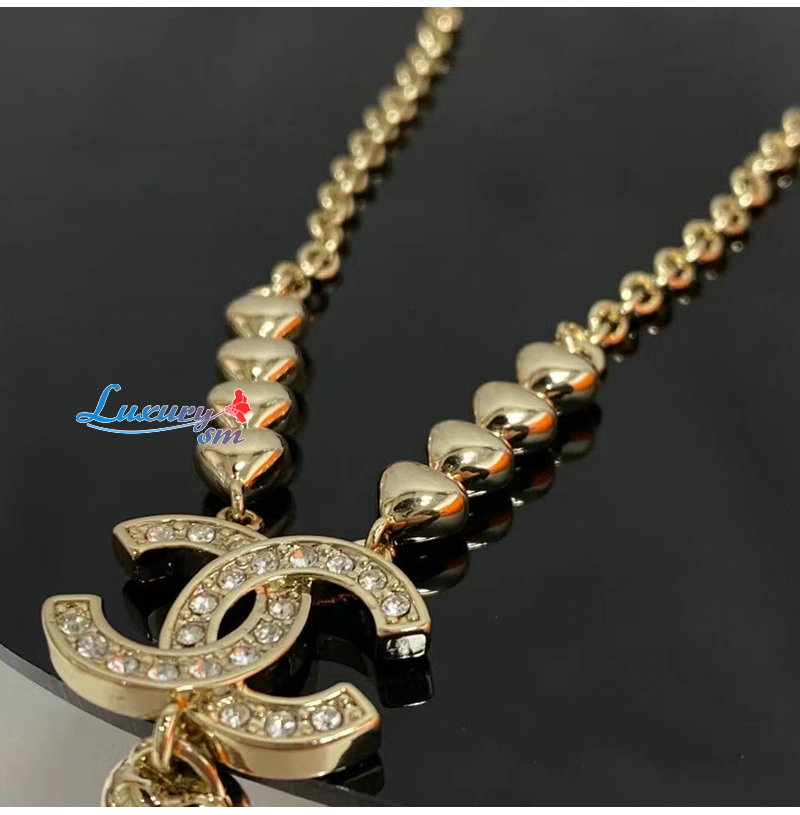 CHANEL-1256 샤넬 골드 크리스탈 장식 CC 로고 목걸이