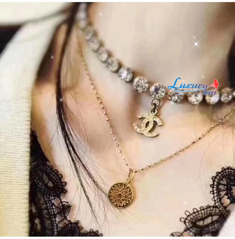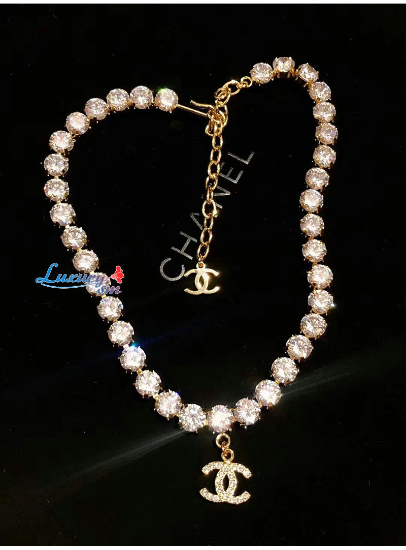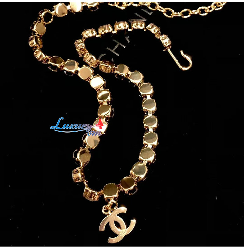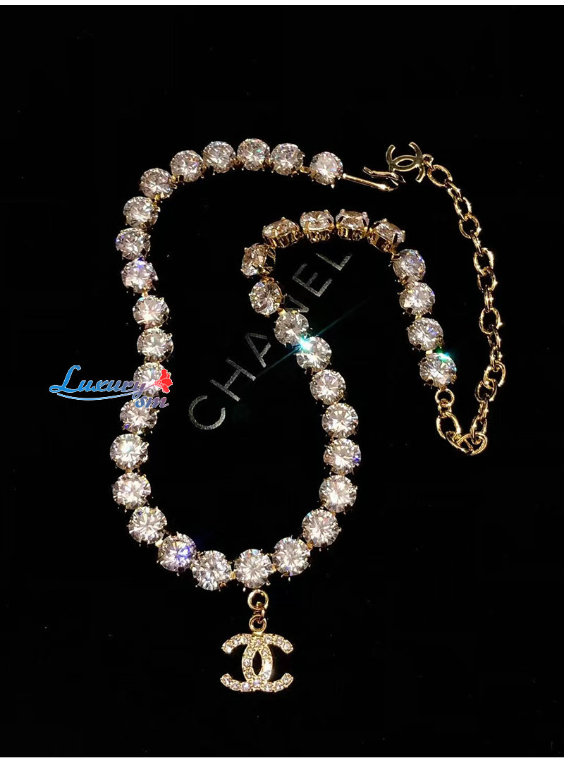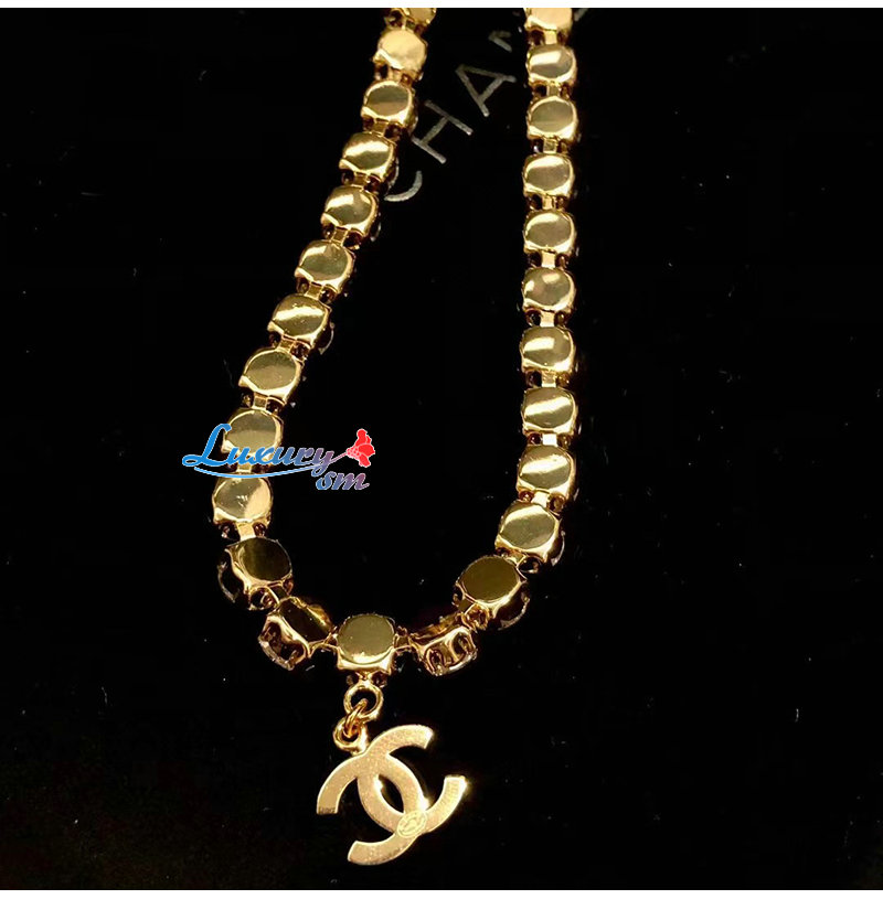 CHANEL-7237 샤넬 골드 크리스탈 장식 CC 로고 목걸이