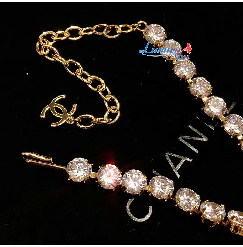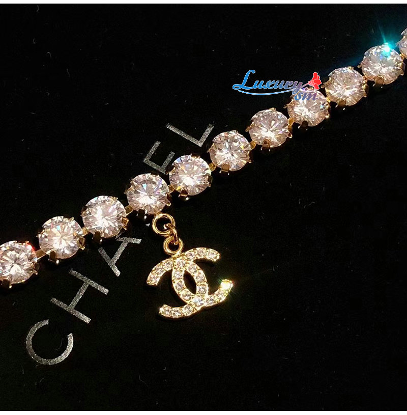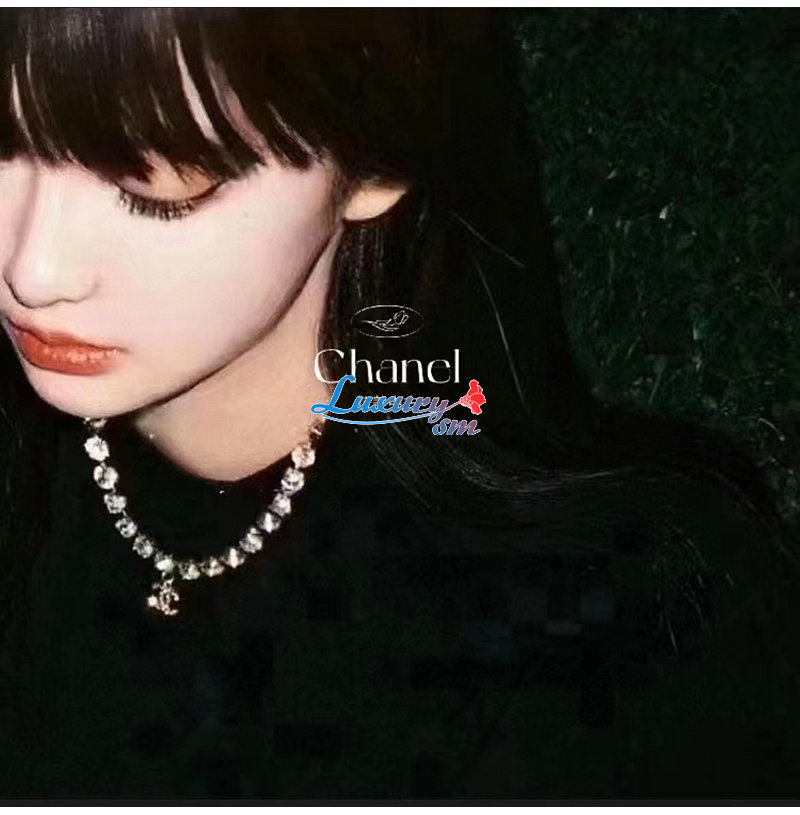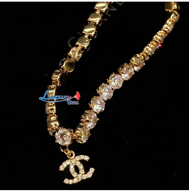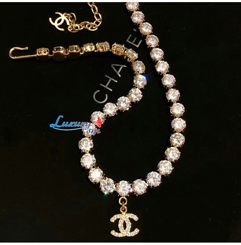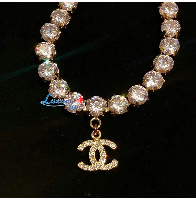 CHANEL-7237 샤넬 골드 크리스탈 장식 CC 로고 목걸이