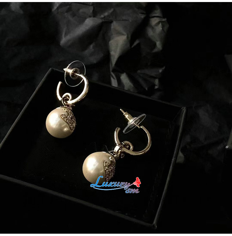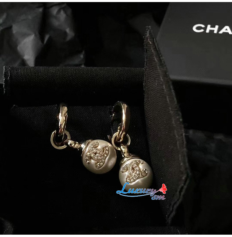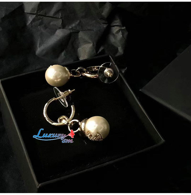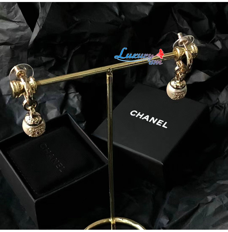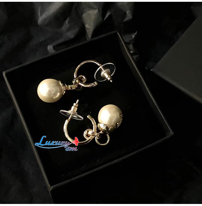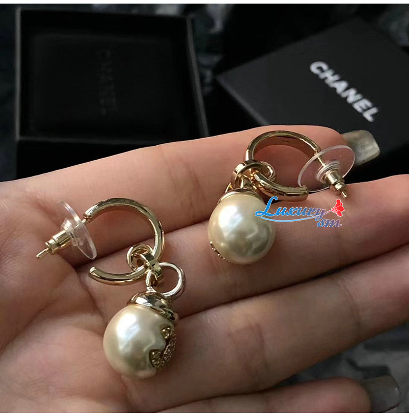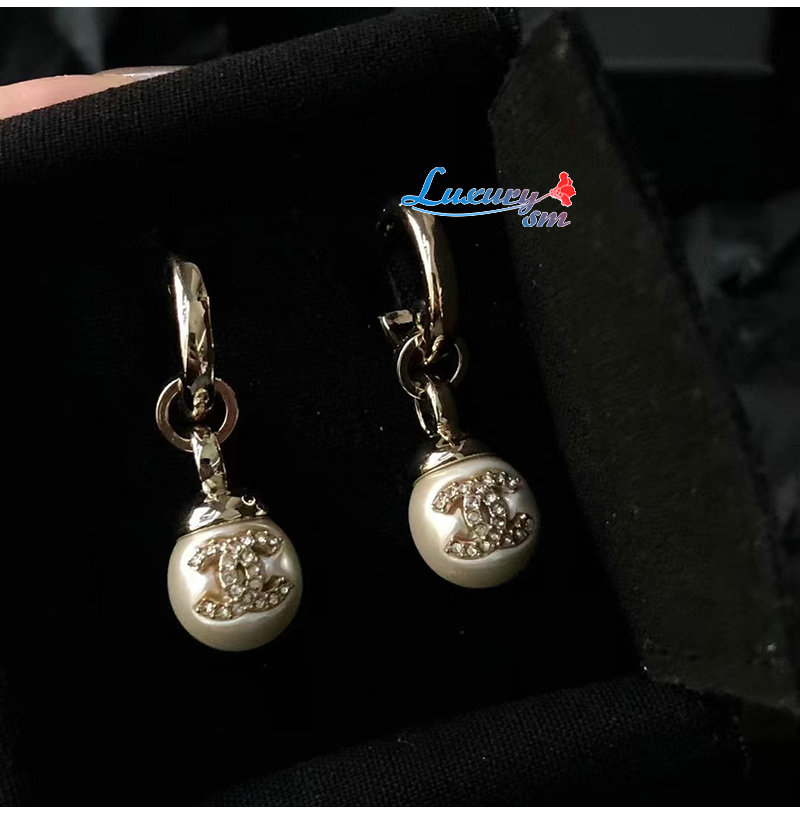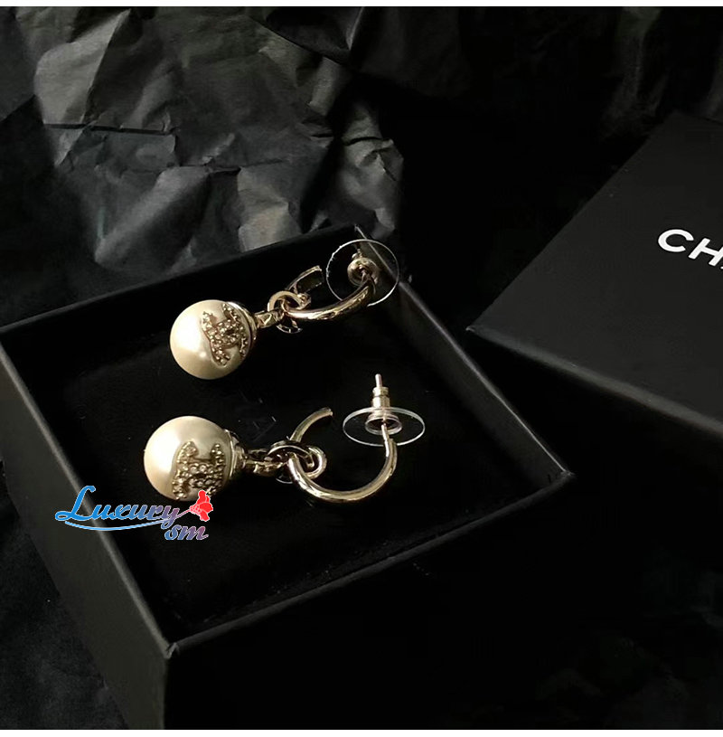 CHANEL-7168 샤넬 골드 CC 로고 장식 펄 귀걸이