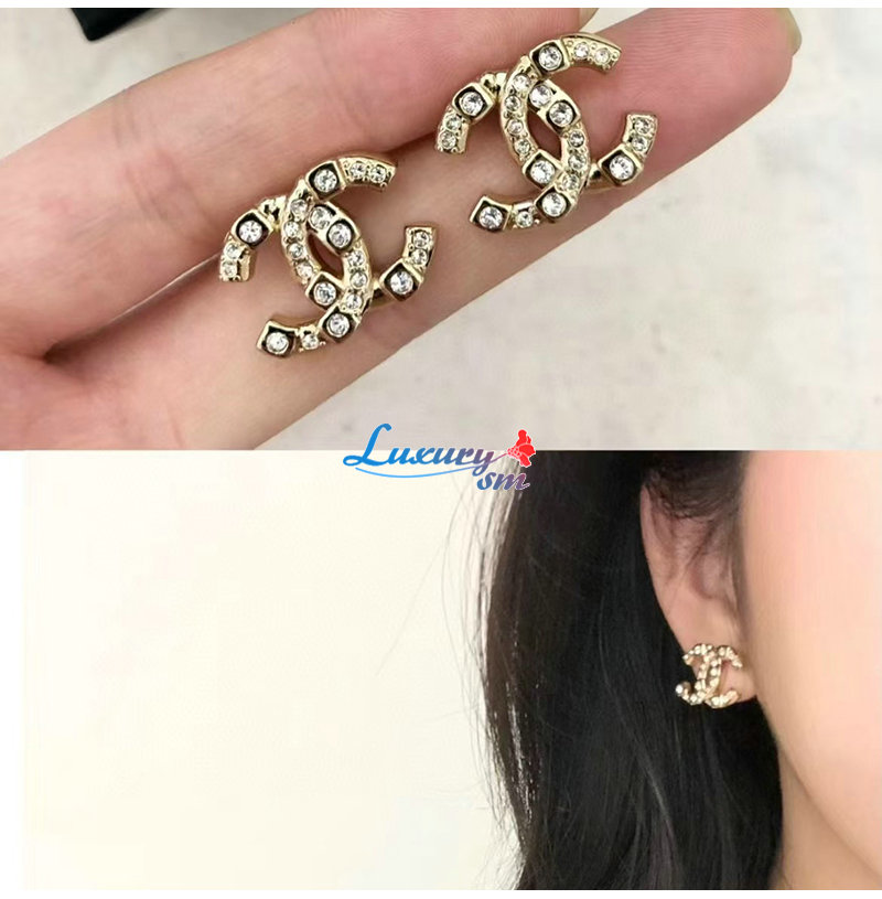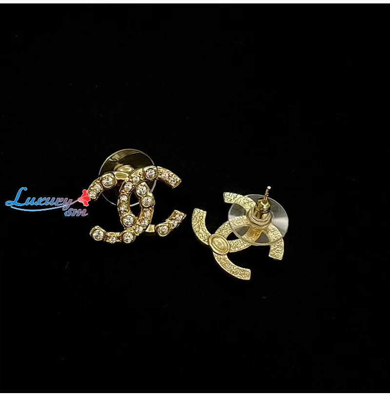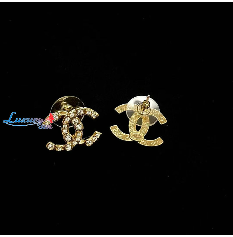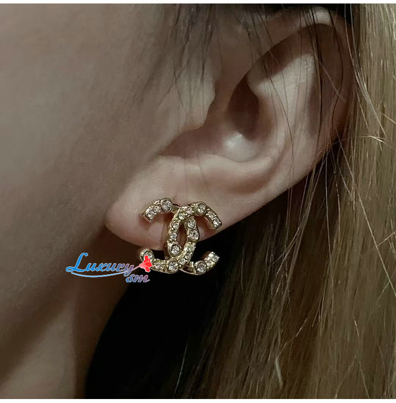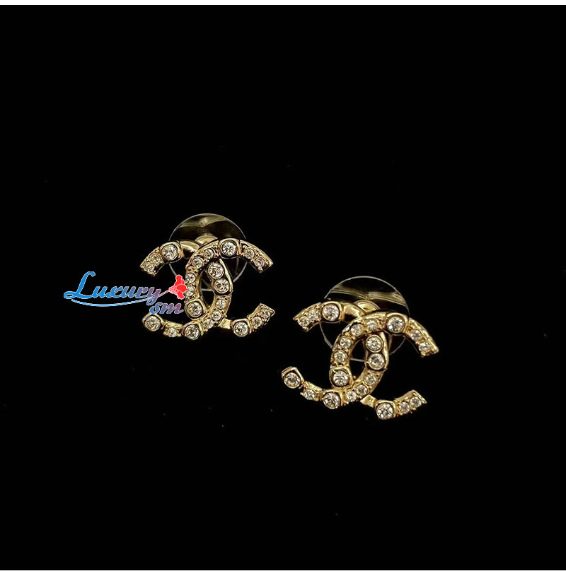 CHANEL-7439 샤넬 골드 크리스탈 장식 CC 로고 귀걸이