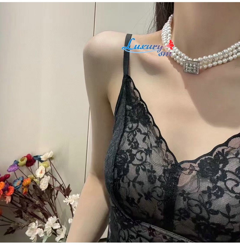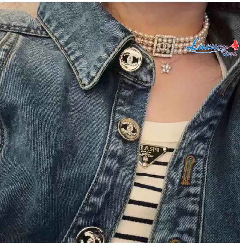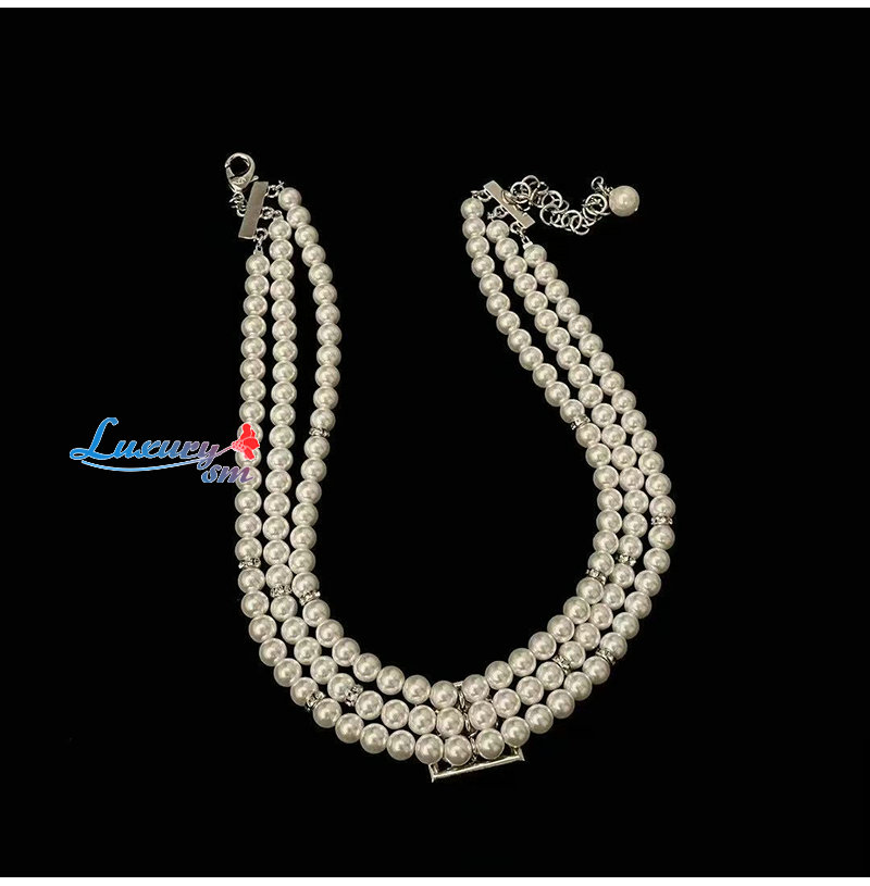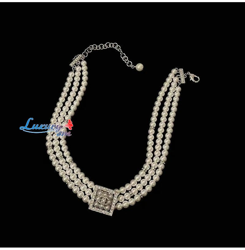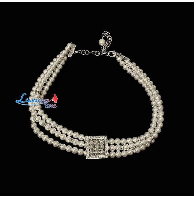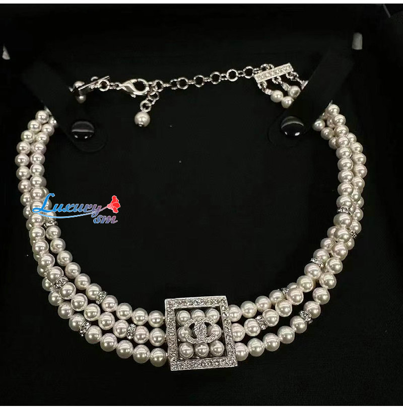 CHANEL-7553 샤넬 크리스탈 장식 진주 목걸이