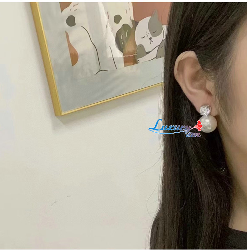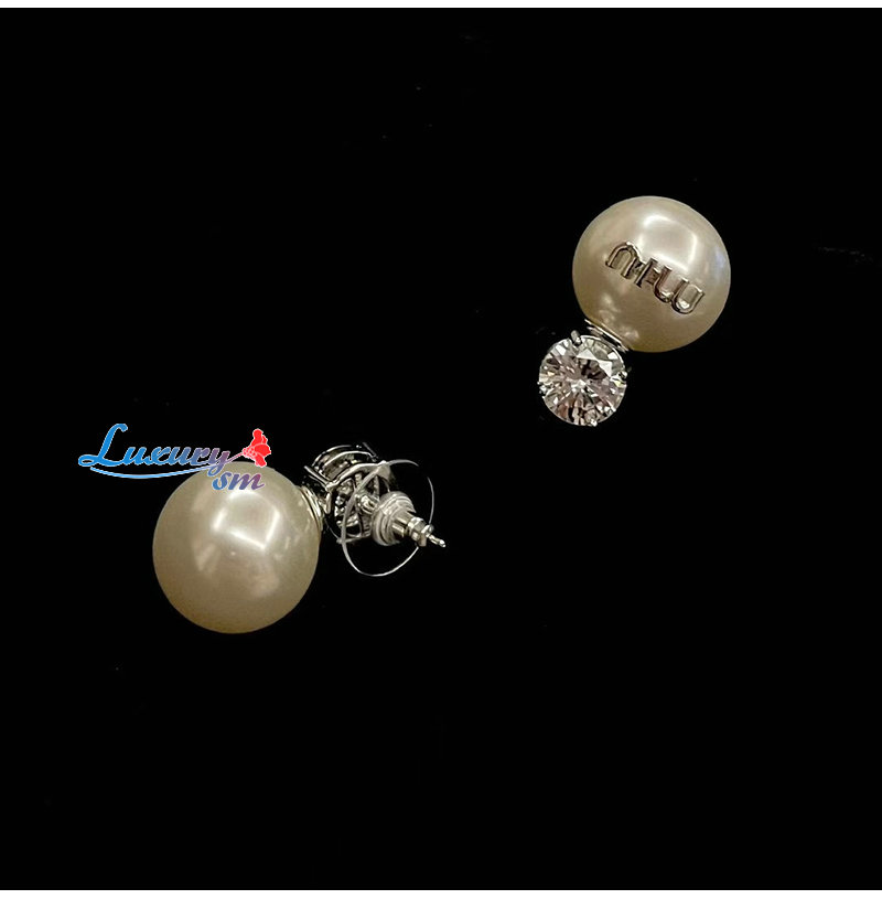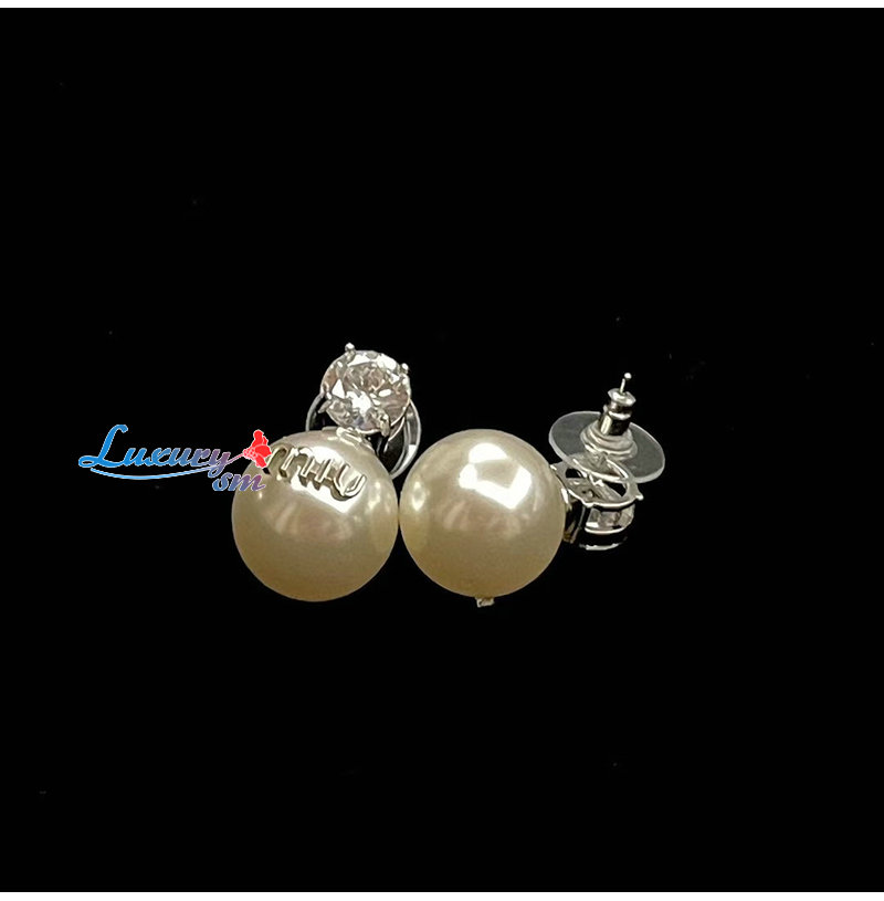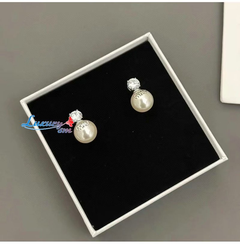 MIUMIU-3019 미우미우 실버/화이트 크리스탈 장식 진주 귀걸이