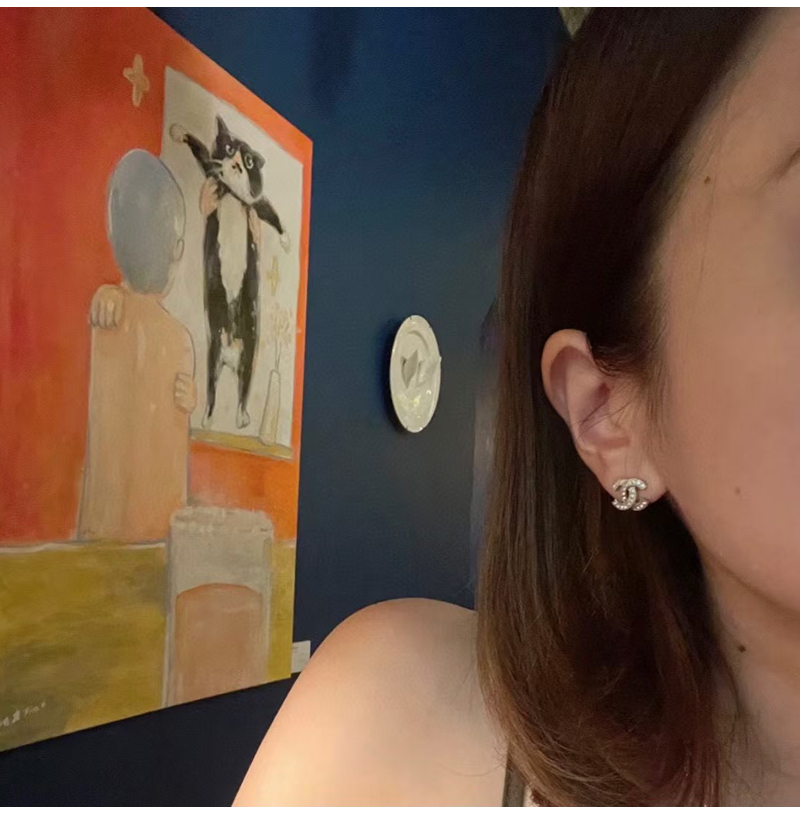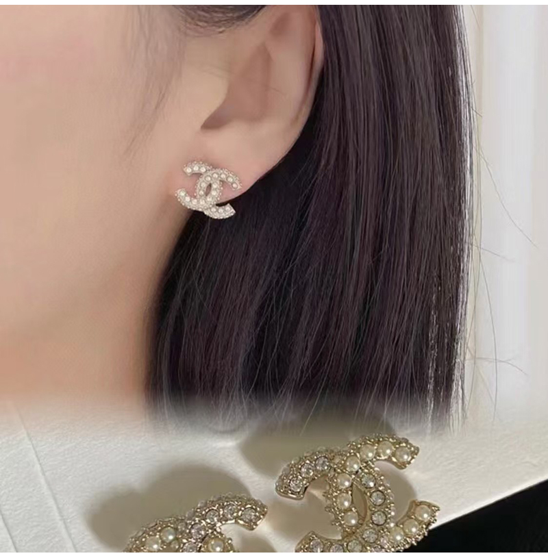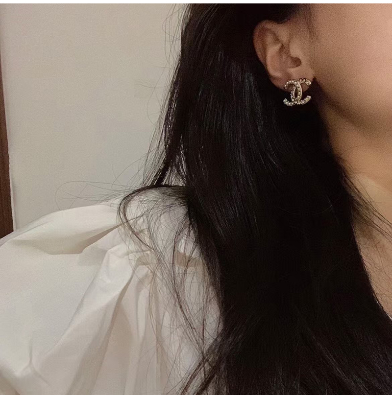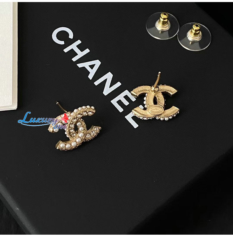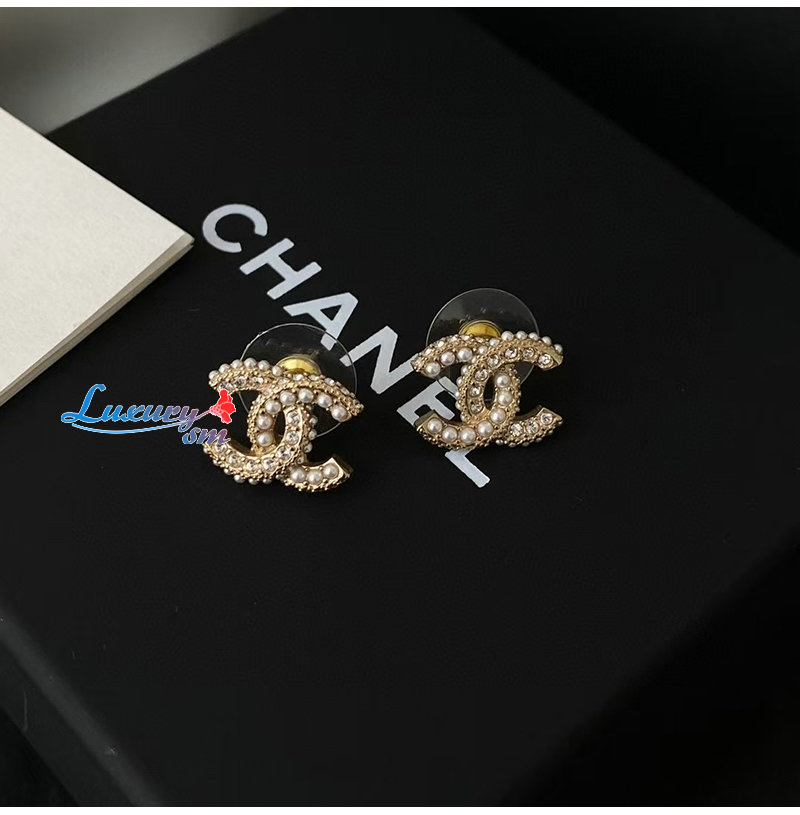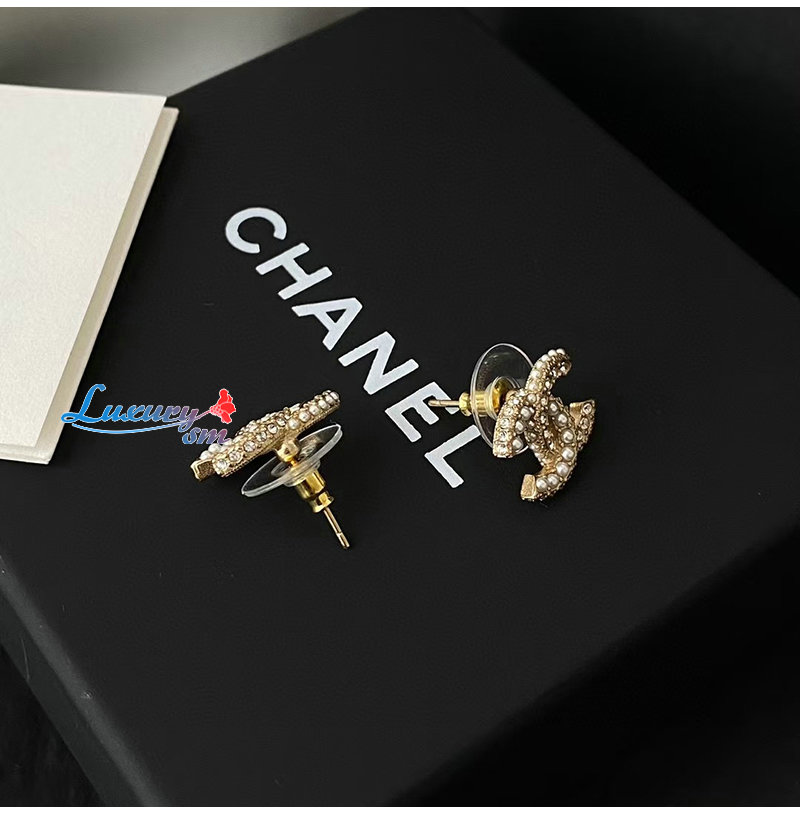 CHANEL-7079 샤넬 골드 크리스탈 장식 CC 로고 귀걸이