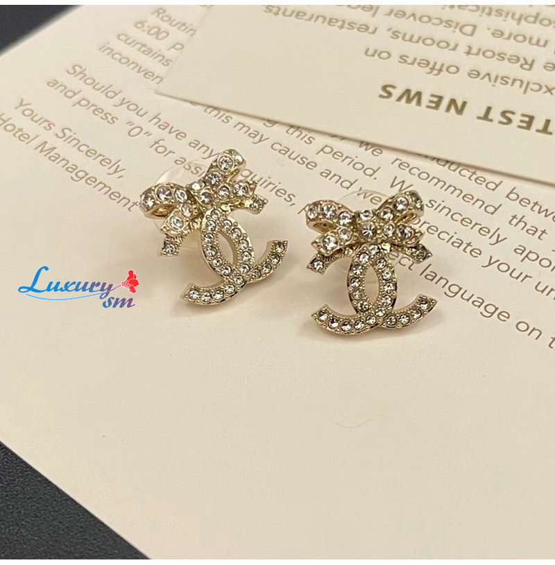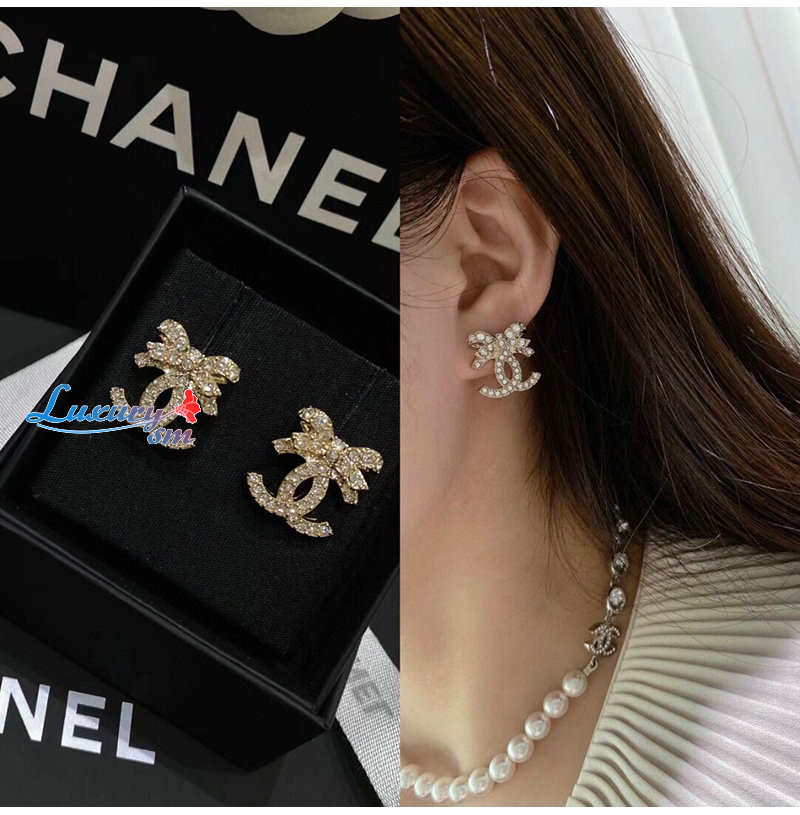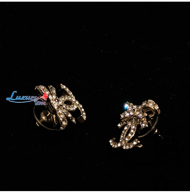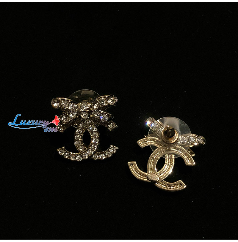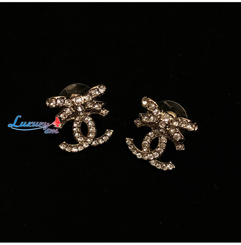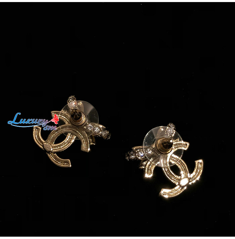 CHANEL-07214 샤넬 골드 크리스탈 장식 CC 로고 귀걸이