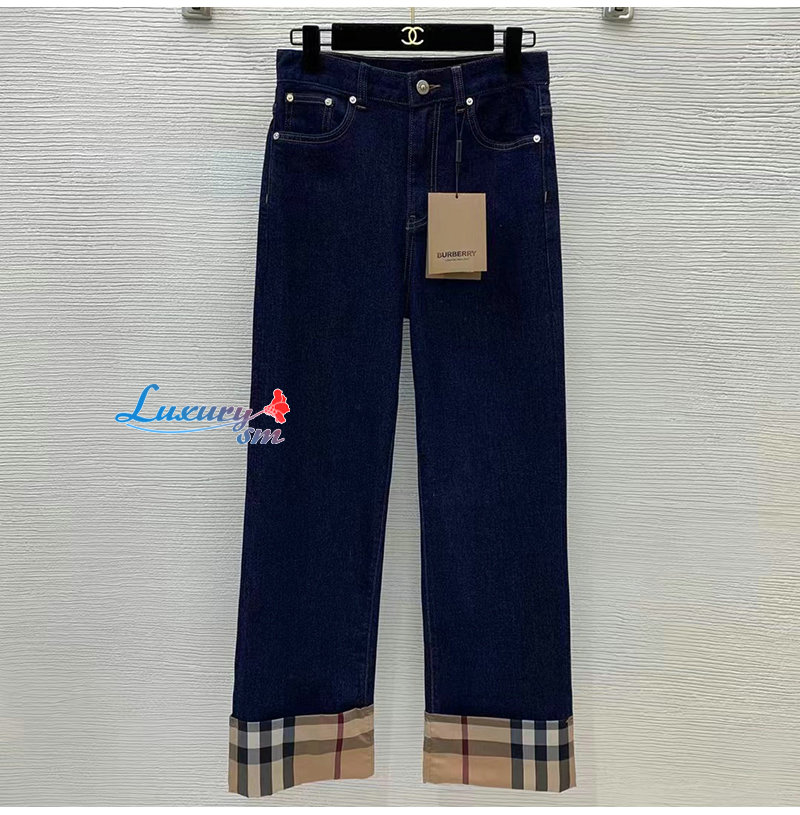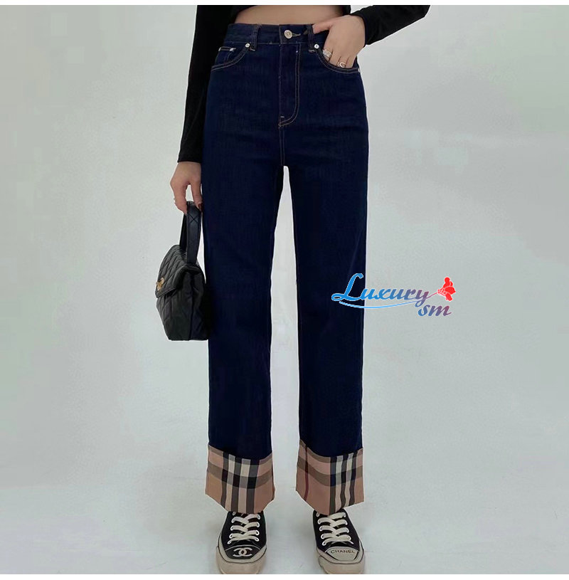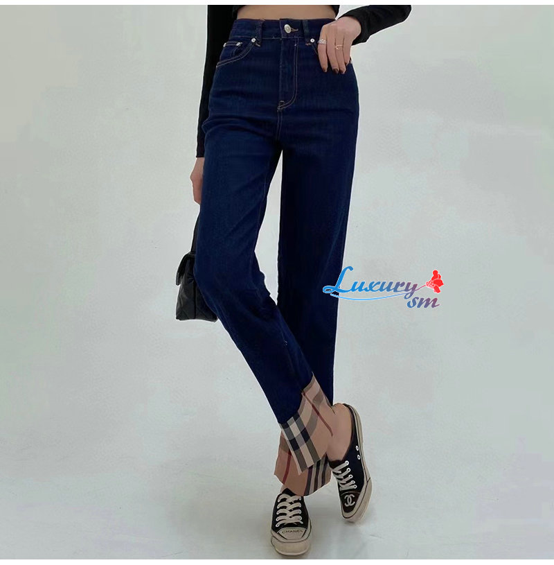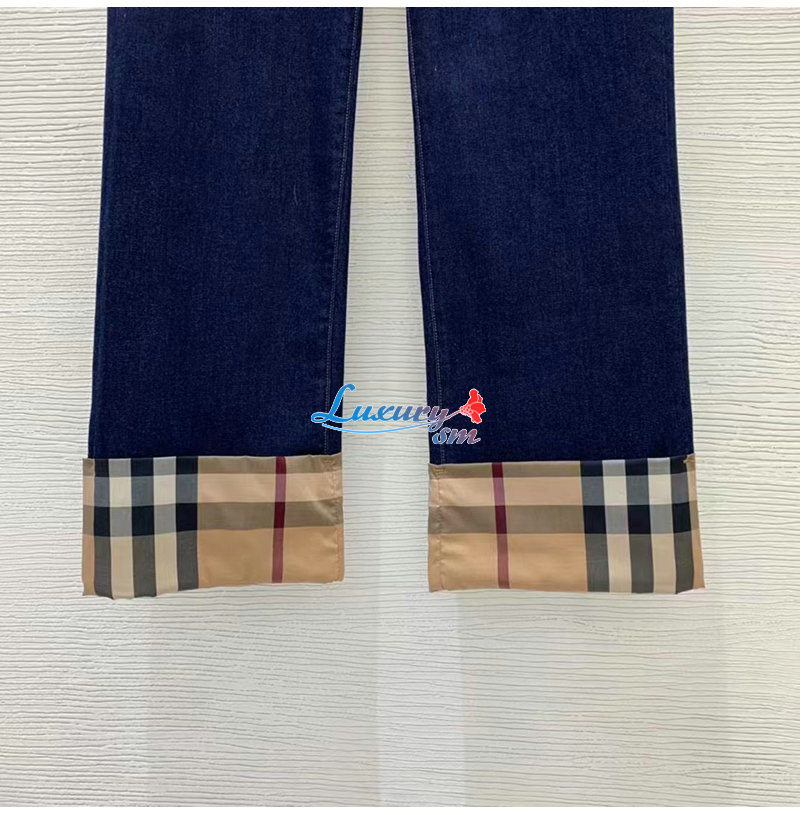 BURBERRY-02287 버버리 다크 블루 체크 무늬 장식 청바지 여성용