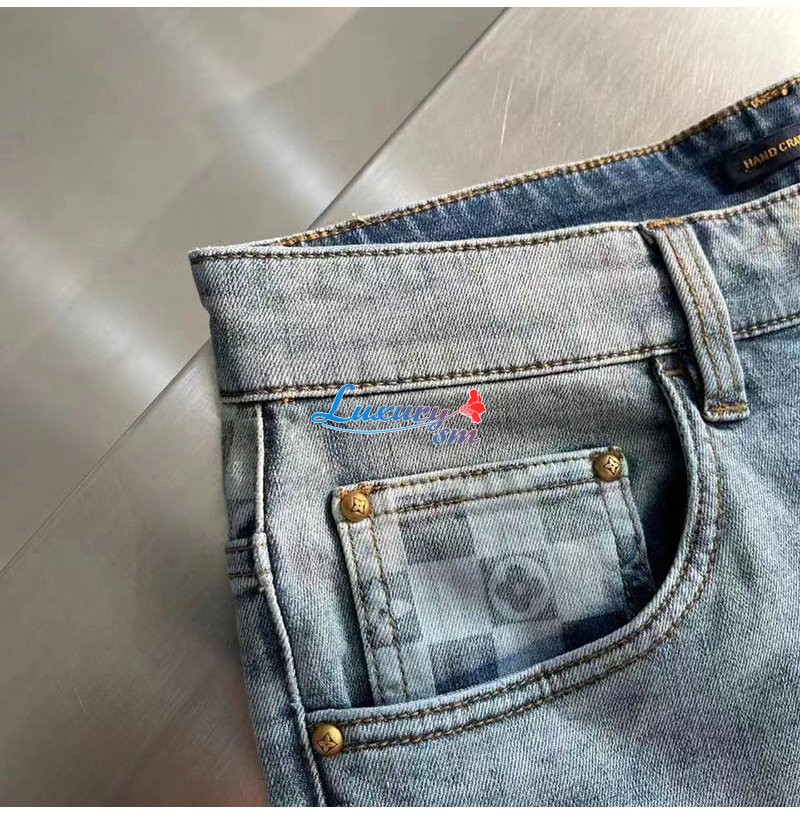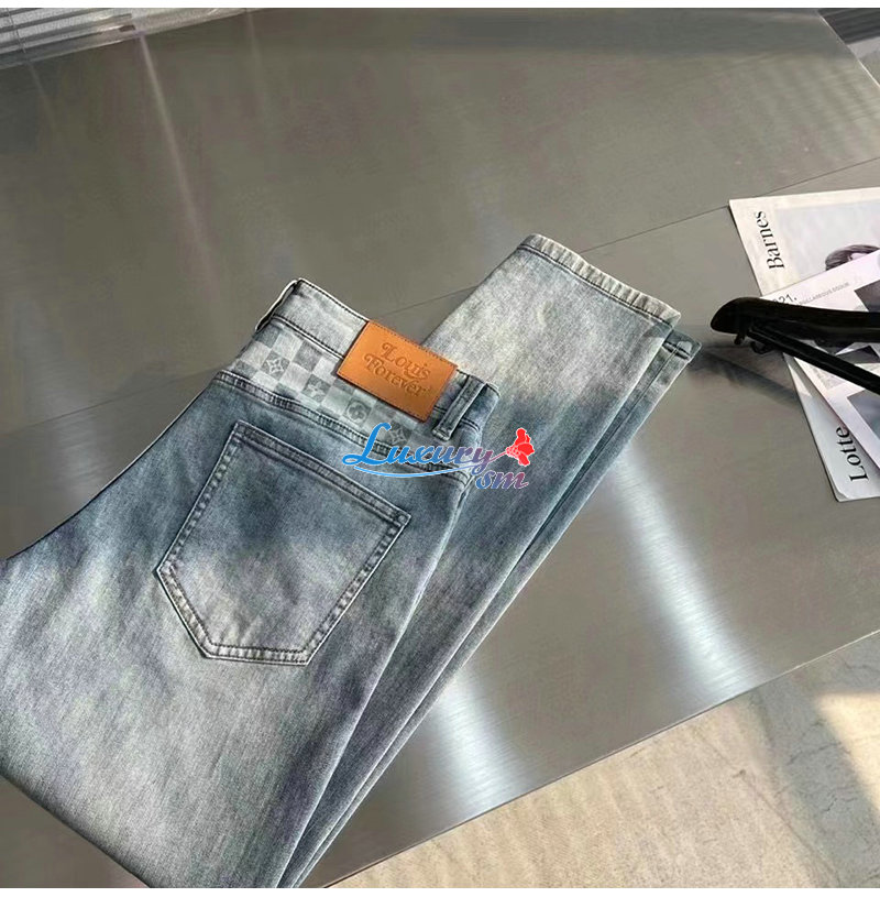 LOUIS VUITTON-03031 루이비통 라이트 블루 다미에 디테일 청바지 남성용