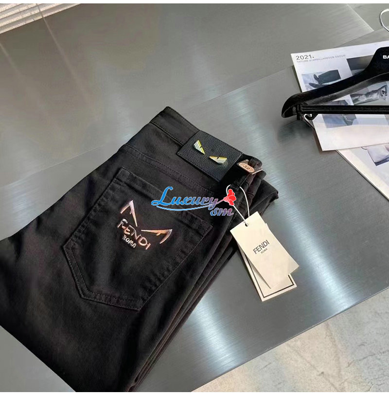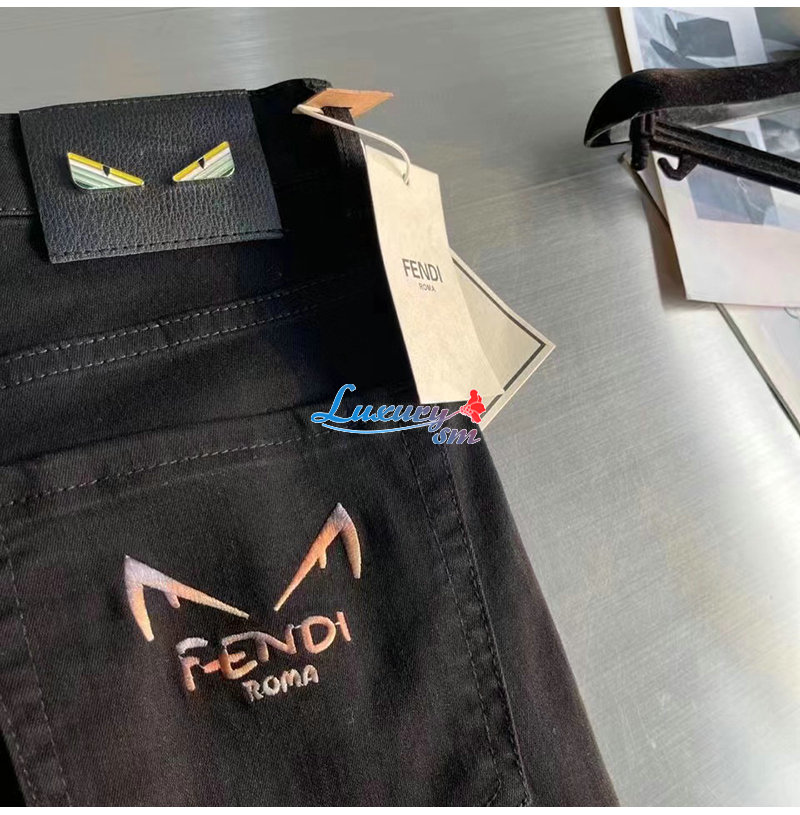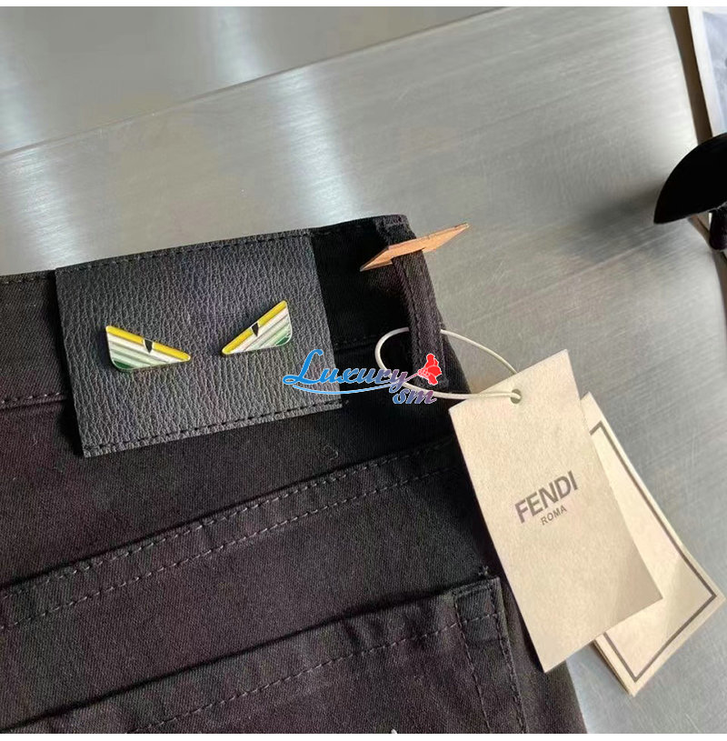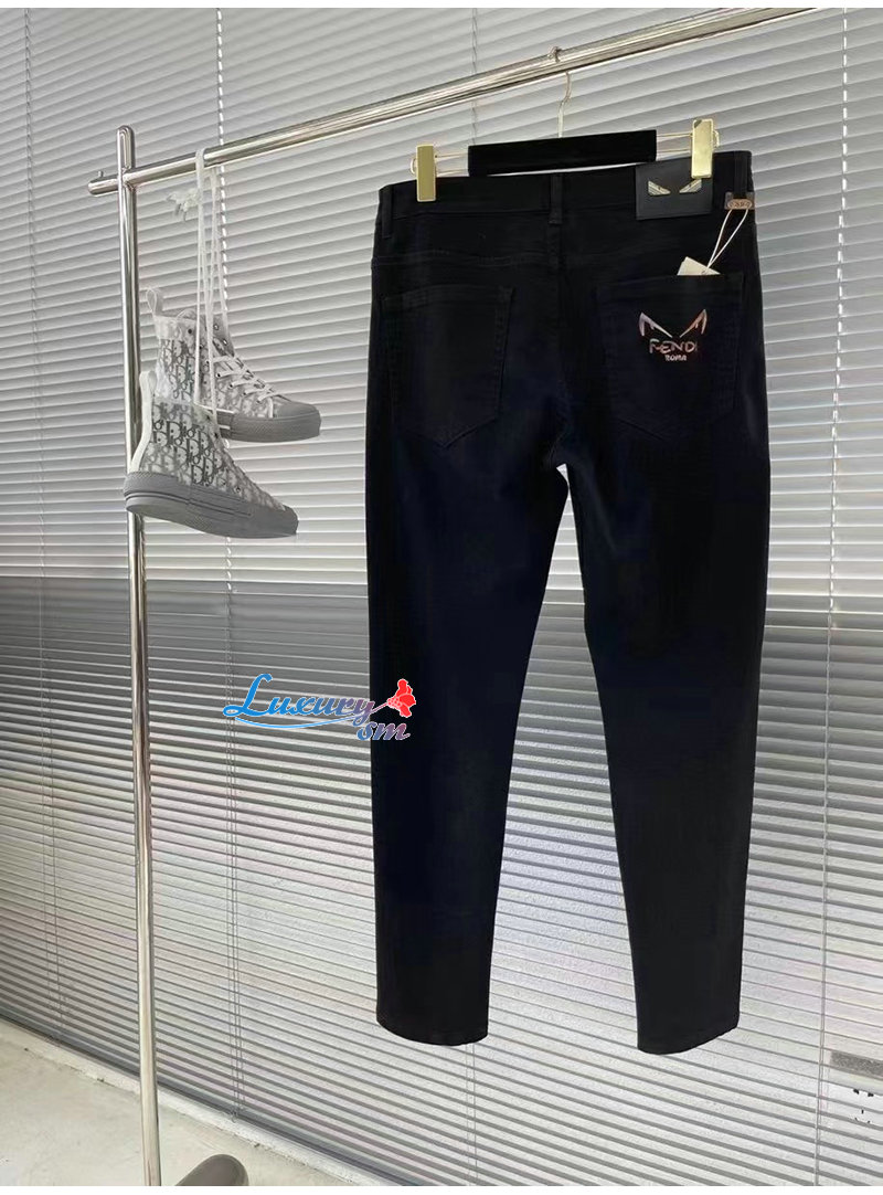 FENDI-03082 펜디 블랙 백 버그 아이 장식 청바지 남성용