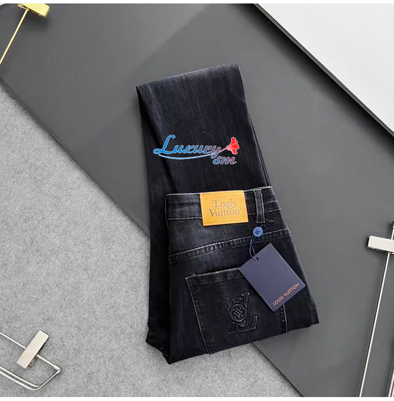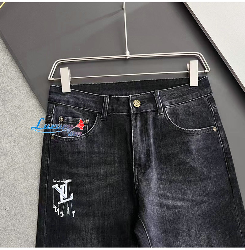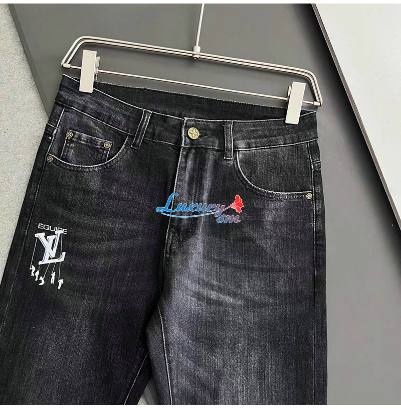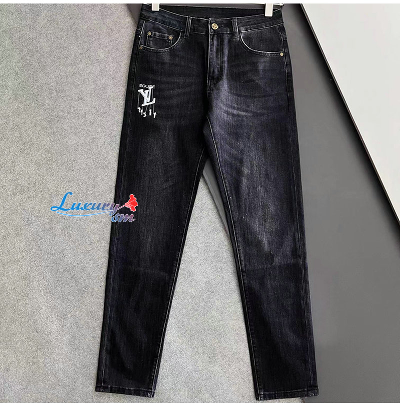 LOUIS VUITTON-03233 루이비통 블랙 LV 시그니처 프린트 장식 청바지 남성용