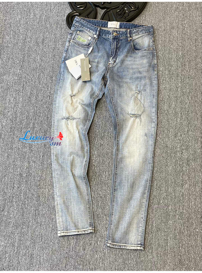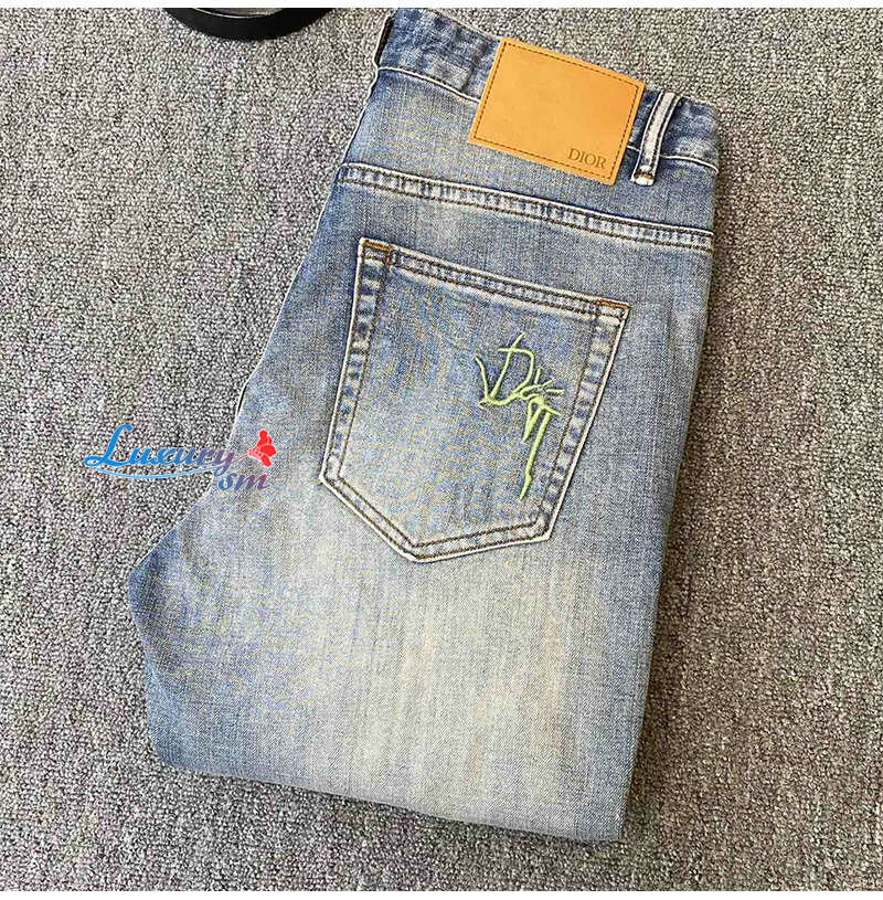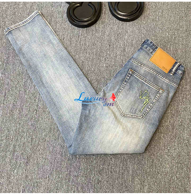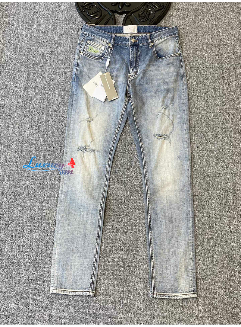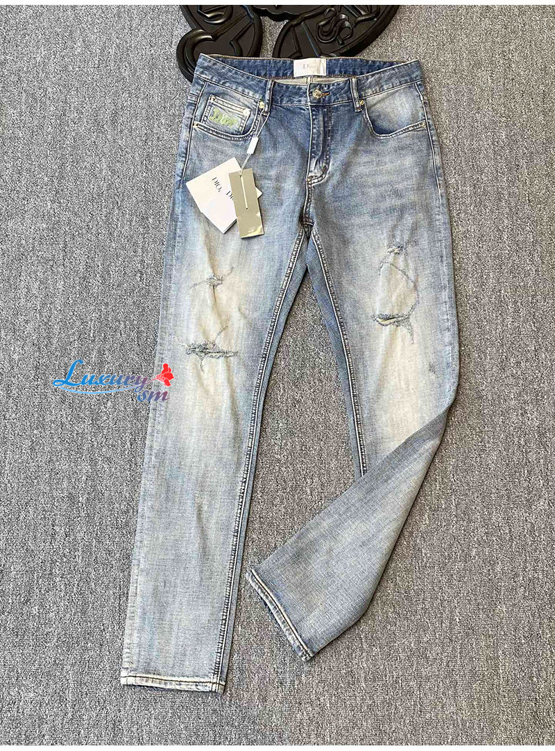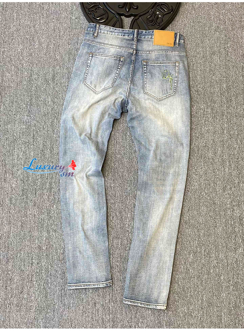 DIOR-031714 디올 라이트 블루 DIOR 아플리케 장식 청바지 남성용