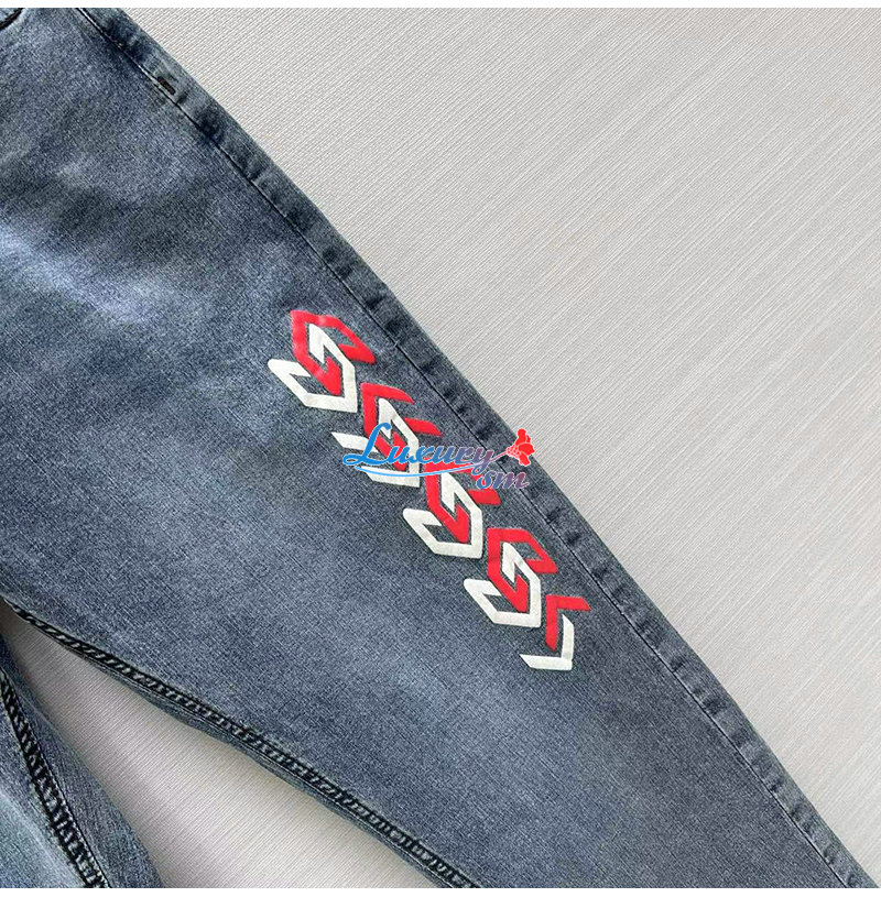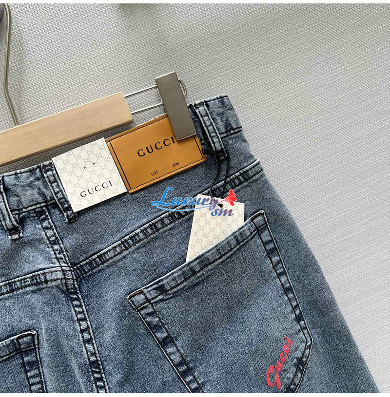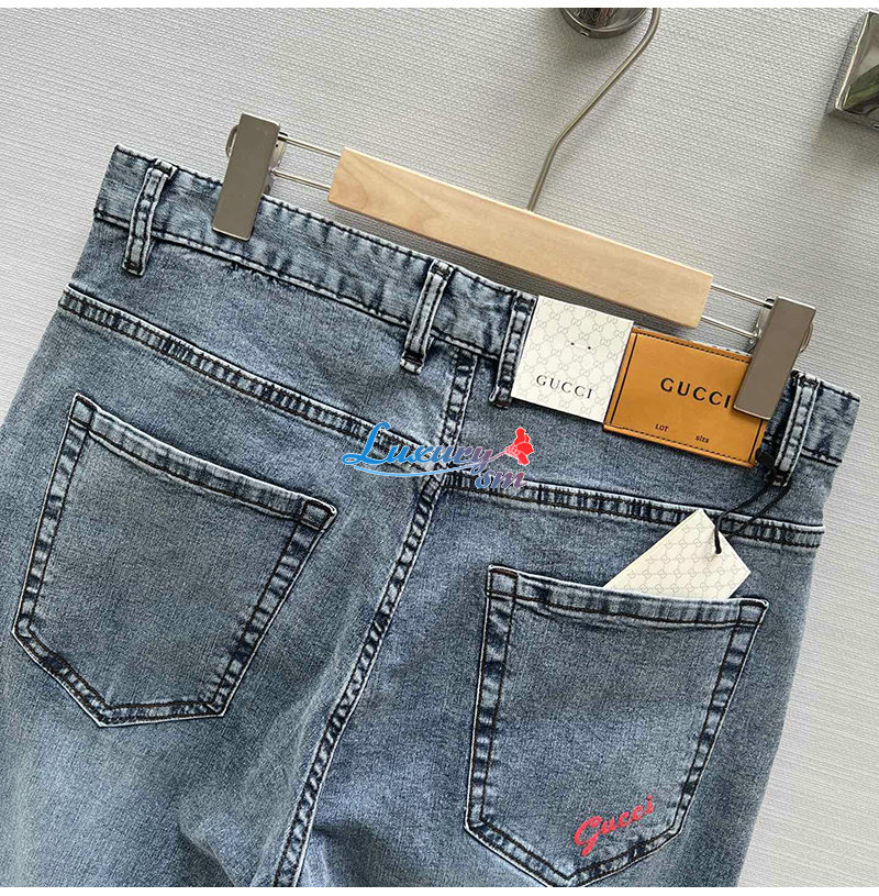 GUCCI-05253 구찌 블루 프린트 장식 청바지 남성용